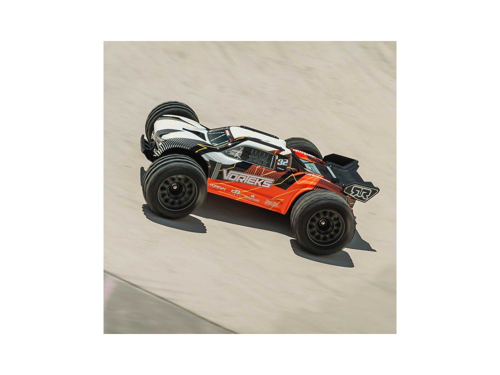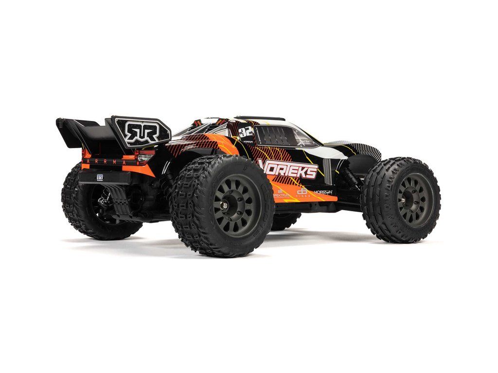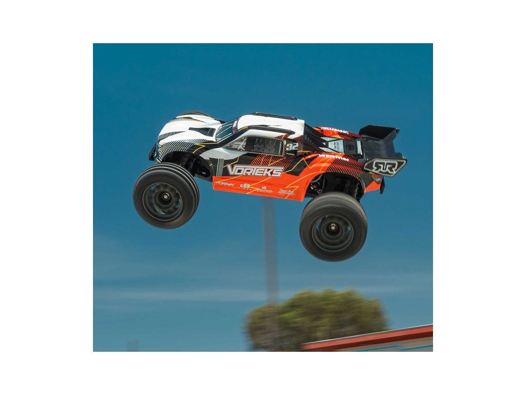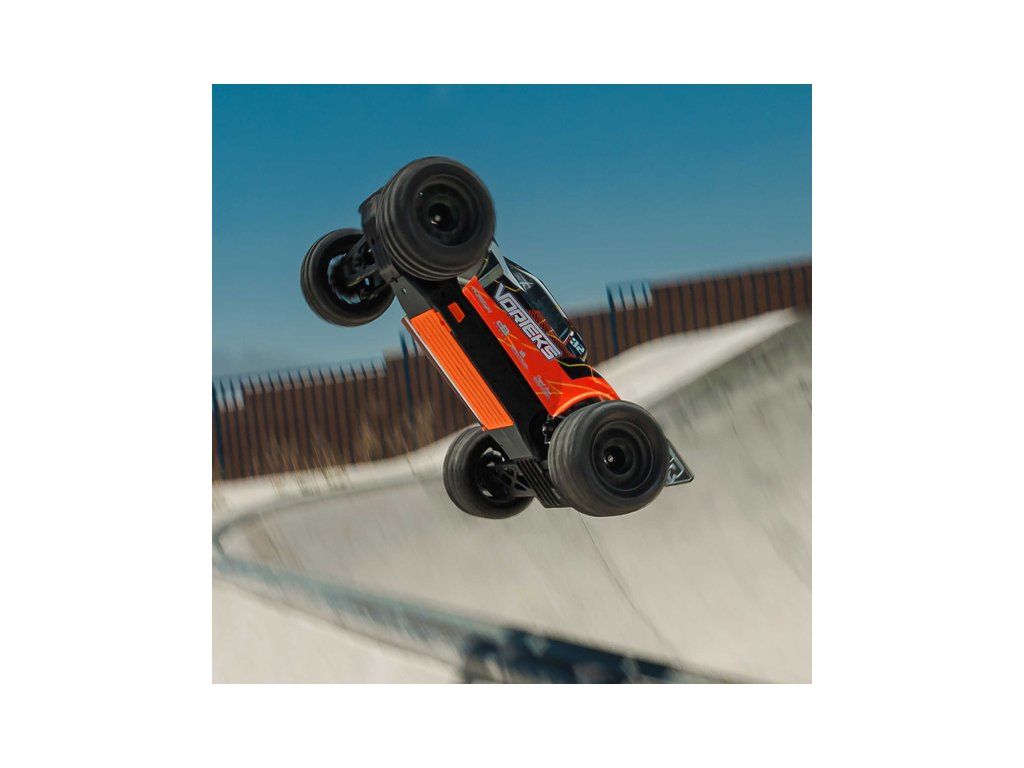 RC model Arrma Vorteks Mega 550 1:10 RTR je cenově dostupné auto na dálkové ovládání typu Truggy s náhonem 2WD, nezávislým zavěšením, olejovými tlumiči, proporcionálním řízením a stejnosměrným motorem. RC souprava SLT 2.4 GHz. V balení NiMH akumulátor a USB-C nabíječ.