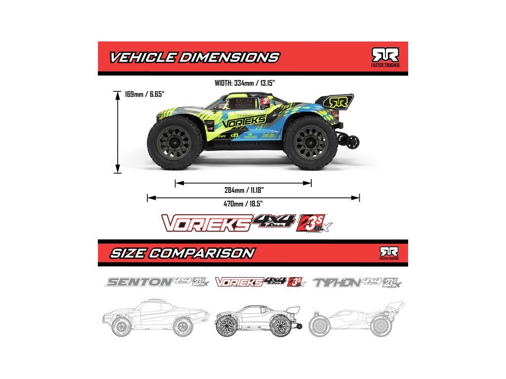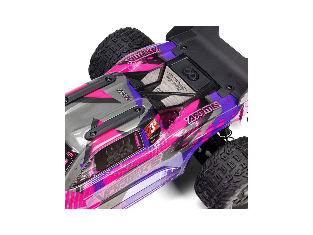 RC model auta Arrma Vorteks 223S BLX v měřítku 1:10, s náhonem 4WD, výkonným střídavým motorem a rychlostí až 80 km/h. Nezávislé zavěšení, olejové tlumiče, řídící jednotka Spektrum 80A SLT 2-3S LiPo, elektronická stabilizace DSC.