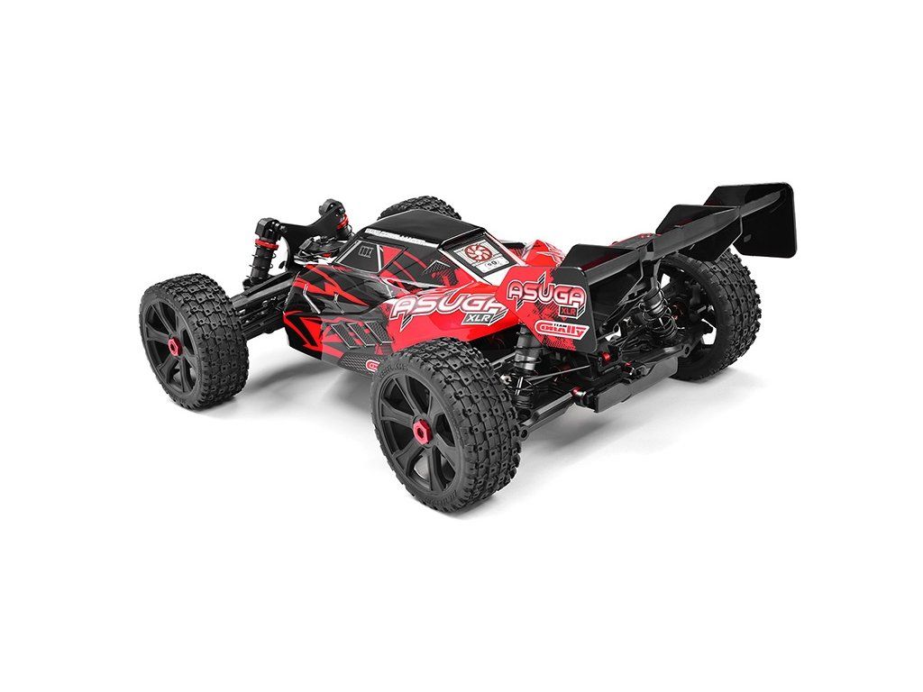 Asuga XLR, která je větší než ostatní modely, přináší zvýšenou světlou výšku, masivní zdvihy odpružení a naddimenzované komponenty na zcela novém podvozku, který využívá osvědčený, odolný a 6S schopný systém hnacího ústrojí, jímž jsou modely Team Corally v měřítku 1/8 proslulé.