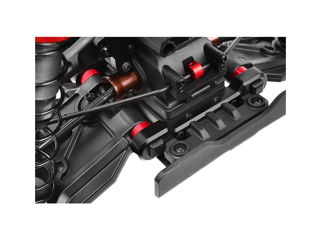 - Masivní 16mm velké závitové hliníkové tlumiče s olejovou náplní, tvrdými pružinami, odolnými 4mm laděnými písty a naddimenzovanými kloubky spodních tlumičů.