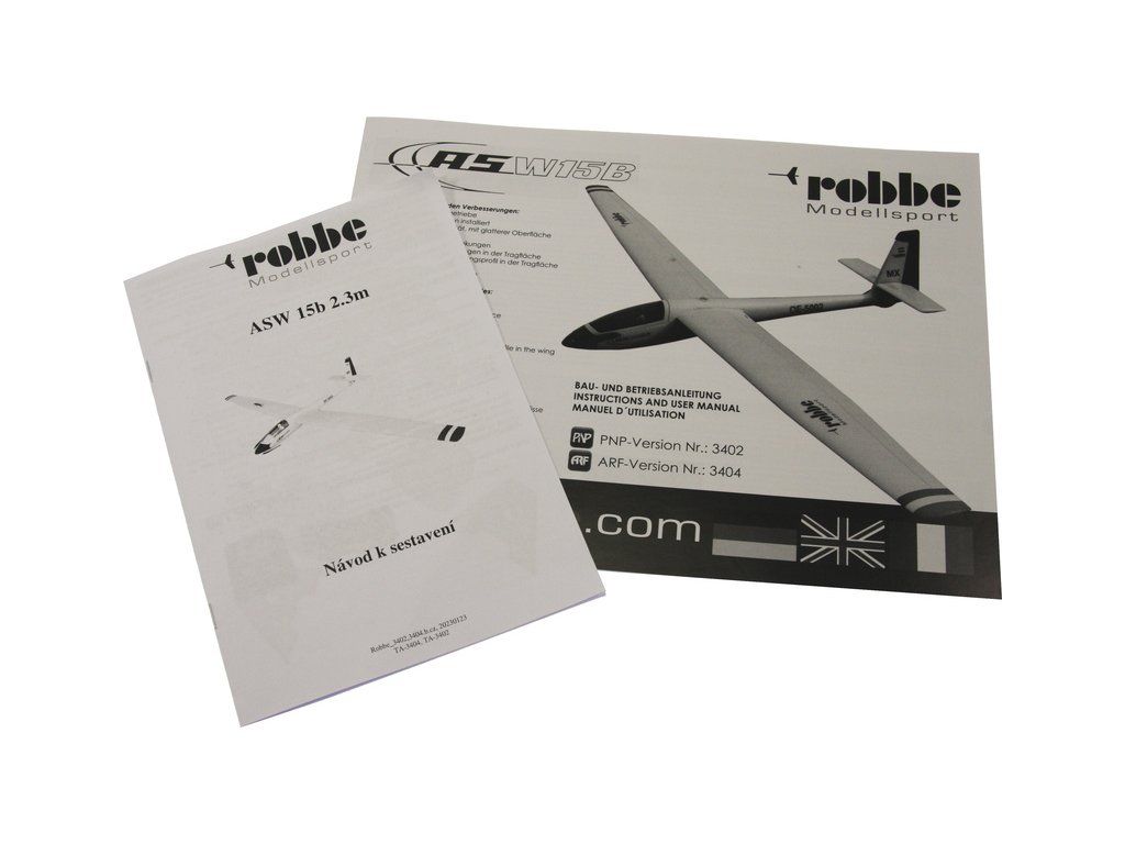 V balení je stavebnice RC modelu větroně ASW 15b o rozpětí 2.27m z EPO bez elektroniky a pohonu, obsažena je sklopná vrtule 10x6 s kuželem 47mm na hřídel 4mm, spojky křídla a výškovky, V-kabel, táhla s vidličkami, kryty serva, suchý zip a pojistku pro spojení křídla sada obtisků, vícejazyčný manuál v angličtině, němčině, francouzštině a návod v češtině.