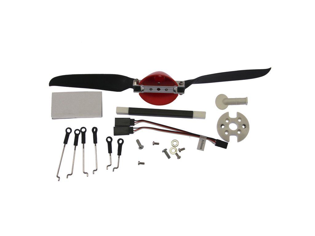 Doporučujeme dokoupit 7+ kanálovou RC soupravu, 6ks mini serva, motor s regulátorem a LiPol baterii 2200mAh 3S s konektorem EC3 a nabíječem.