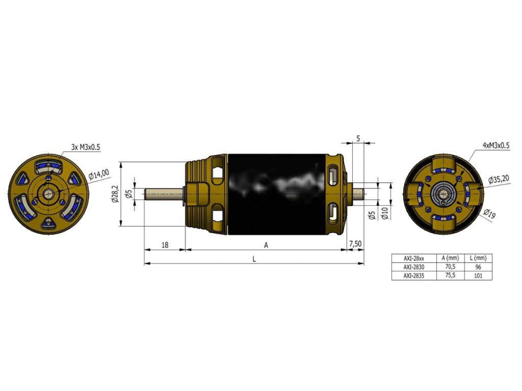 Střídavý elektromotor s rotačním pláštěm nové generace s prodlouženým kónickým předním čelem pro snadnou montáž do větroňů. Pro hotlinery do 3000g, větroně 3500g, napájení Lixx 4s, hřídel 5 mm, regulátor 70A.Doplňkové parametry