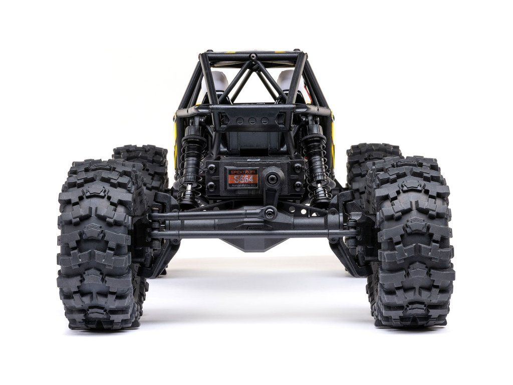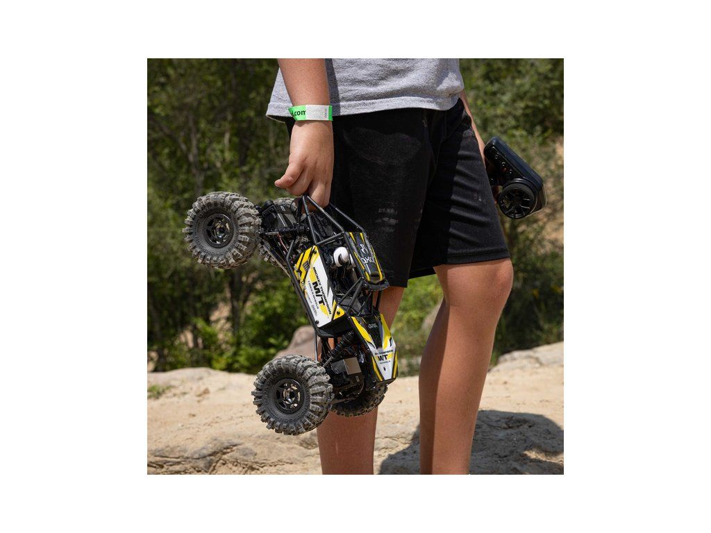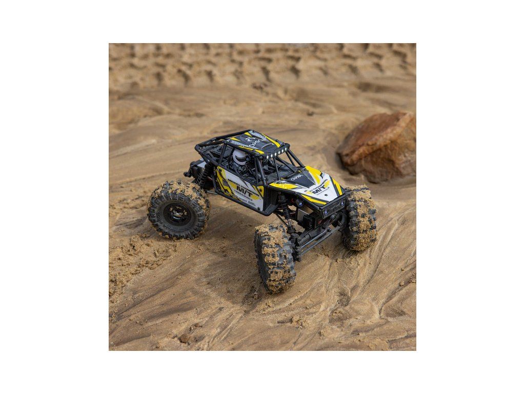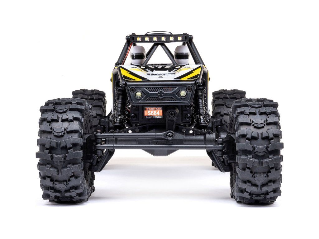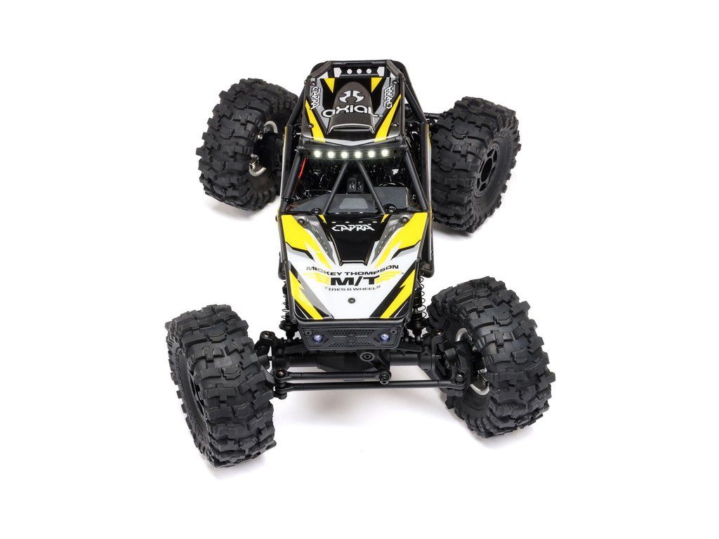 RC model auta Axial Capra 4WS 1:18 pro jízdu v terénu a překonávání překážek s jedinečným řízením všech kol 4WS. Trubková konstrukce, portálové nápravy, 4-bodové zavěšení náprav, LED světlomety, světelná lišta. Elektronika Spektrum. Vše pro provoz obsahem balení - Smart baterie a USB nabíječ.