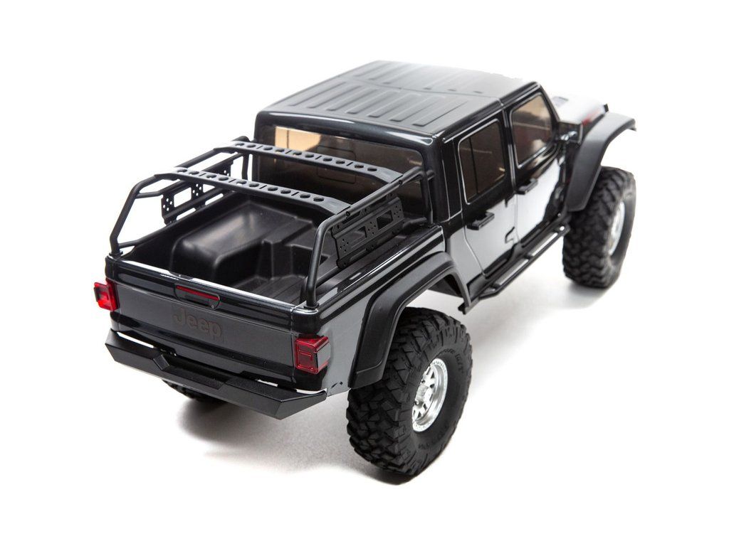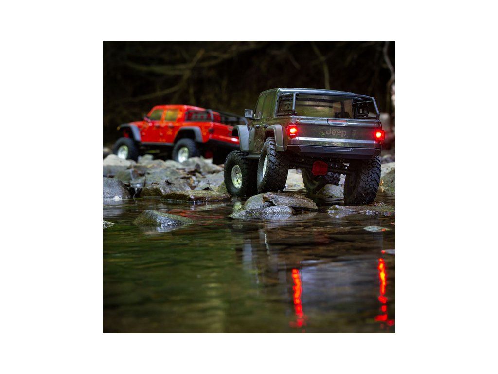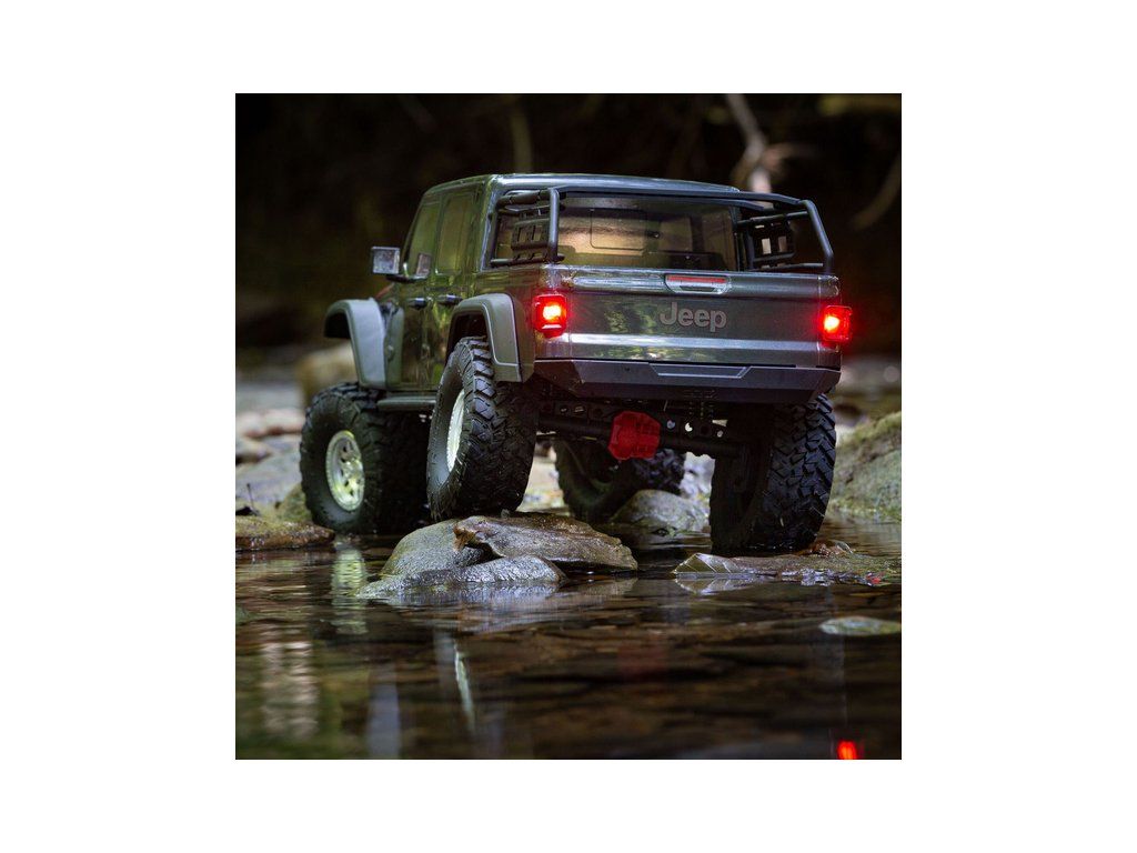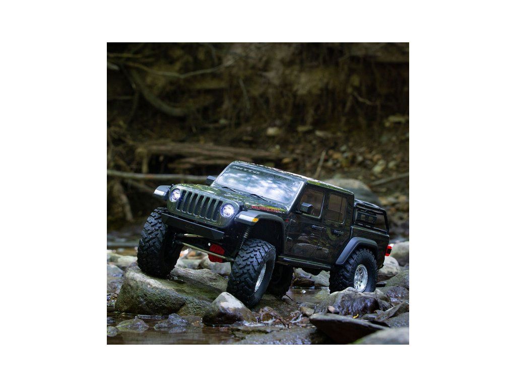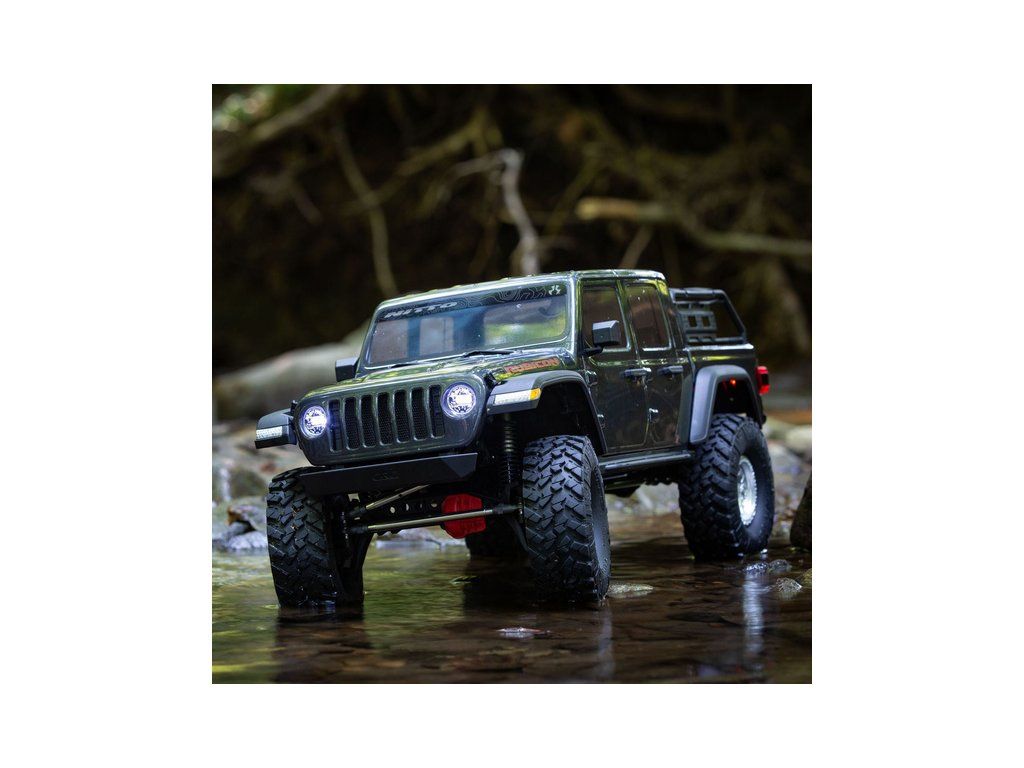 Expediční RC model auta Jeep JT Gladiator na podvozku Axial SCX10 III. Reálně vypadající podvozek s realistickým krytem převodovky, maketou motoru V8 a portálovými nápravami. Samozřejmostí jsou licencovaná kola. RC souprava Spektrum DX3 s telemetrií.