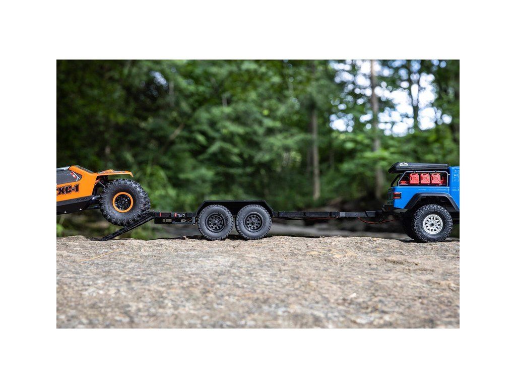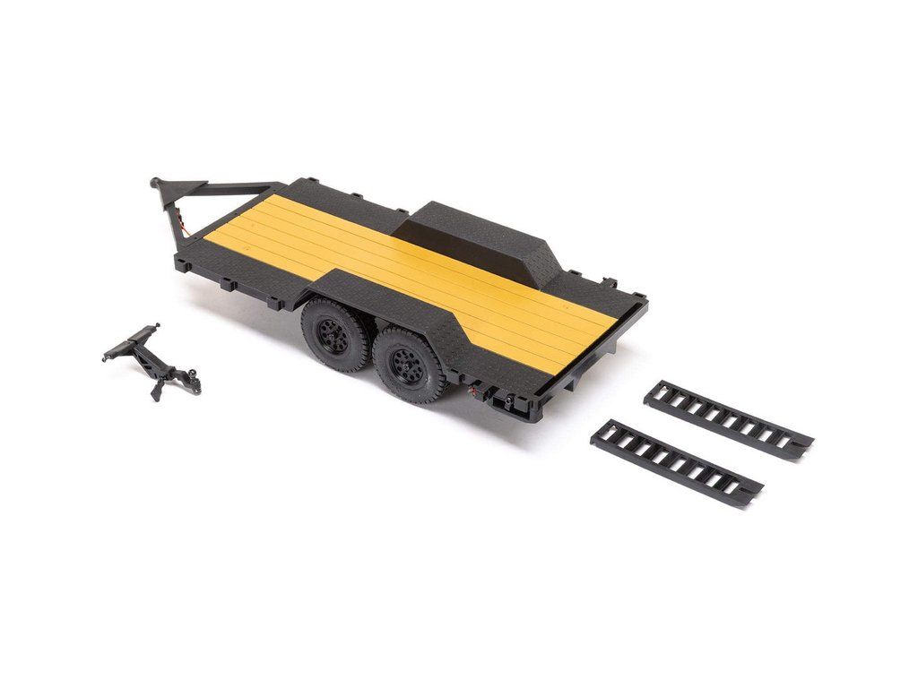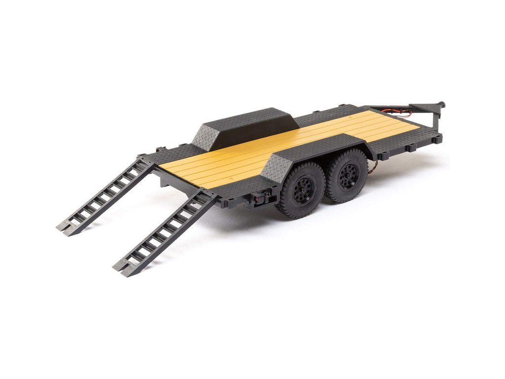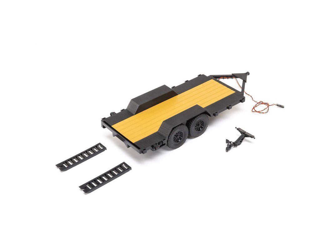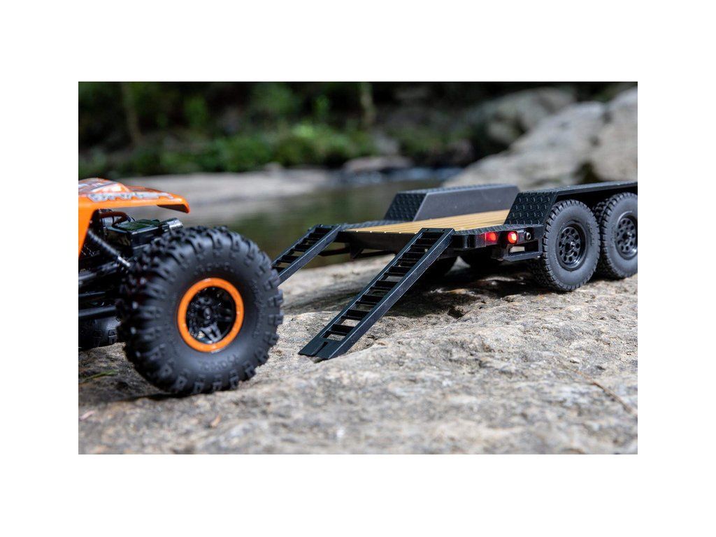 V balení je hotový sestavený Axial SCX24 přívěs s LED světly 1:24, nájezdovou rampou a tažným zařízením.