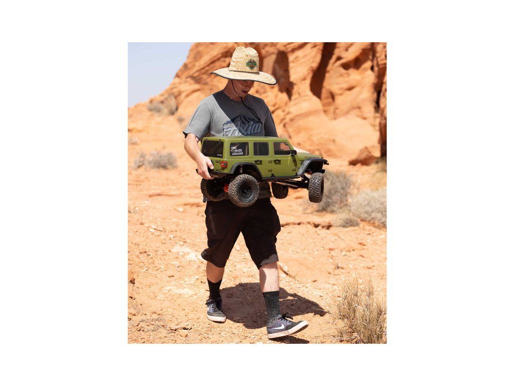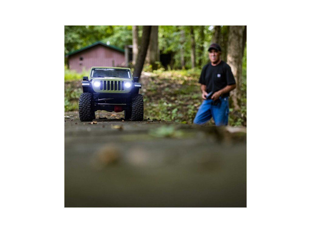 V balení je hotový sestavený RC model auta Axial® SCX6 Jeep JLU Wranger 1:6 4WD RTR s nainstalovanými komponenty: Spektrum motor střídavý Firma 5684 1200ot/V Sensored, Spektrum regulátor střídavý FIRMA Crawler 120A Sensored BL Smart, Spektrum přijímač SR515 DSMR 5CH, Spektrum servo S905 38kg.cm 0.2s/60° WP 15T, Spektrum servo S614 MG WP 23T, přiložen je Vysílač Spektrum DX3 Smart DSMR, 4x AA baterie do vysílače, drobné příslušenství, návod v češtině, manuál EN, DE, FR, IT.