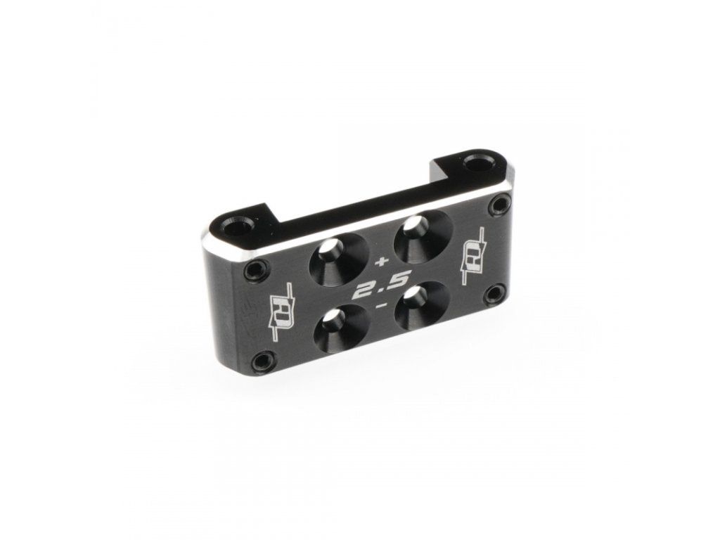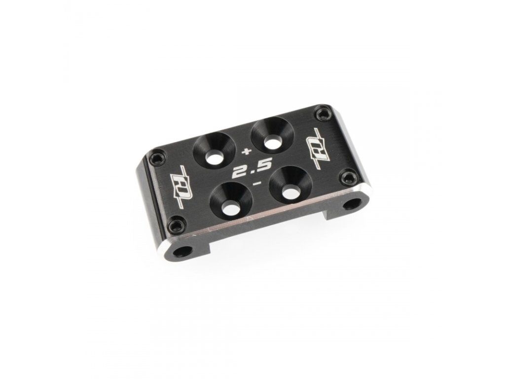Hliníkový přední držák zavěšení Revolution Design Racing Products (RDRP) 0° (RDRP0649) a +/-2,5° (RDRP0650) jsou prémiové tuningové díly určené k nahrazení standardního držáku buggy Team Associated RC10B7 a RC10B7D. Tyto držáky jsou vyrobeny z vysoce pevného leteckého hliníku 7075-T6, který nabízí velkou stabilitu a odolnost. Černě eloxovaný povrch a stříbrné detaily hran dodávají buggy vizuálně atraktivní vzhled.