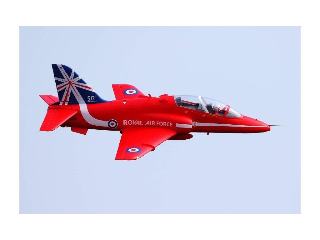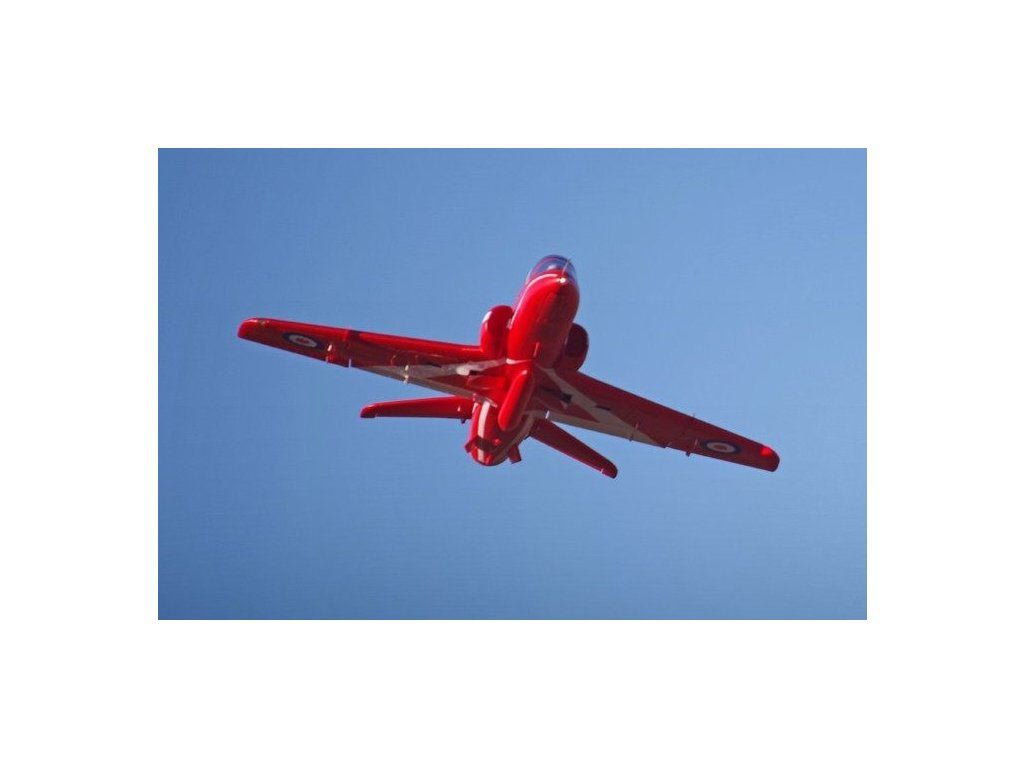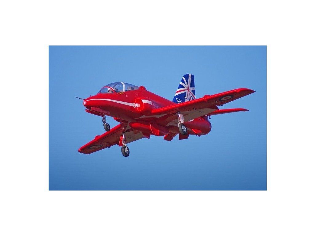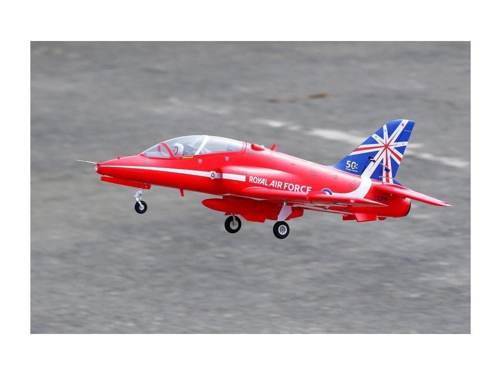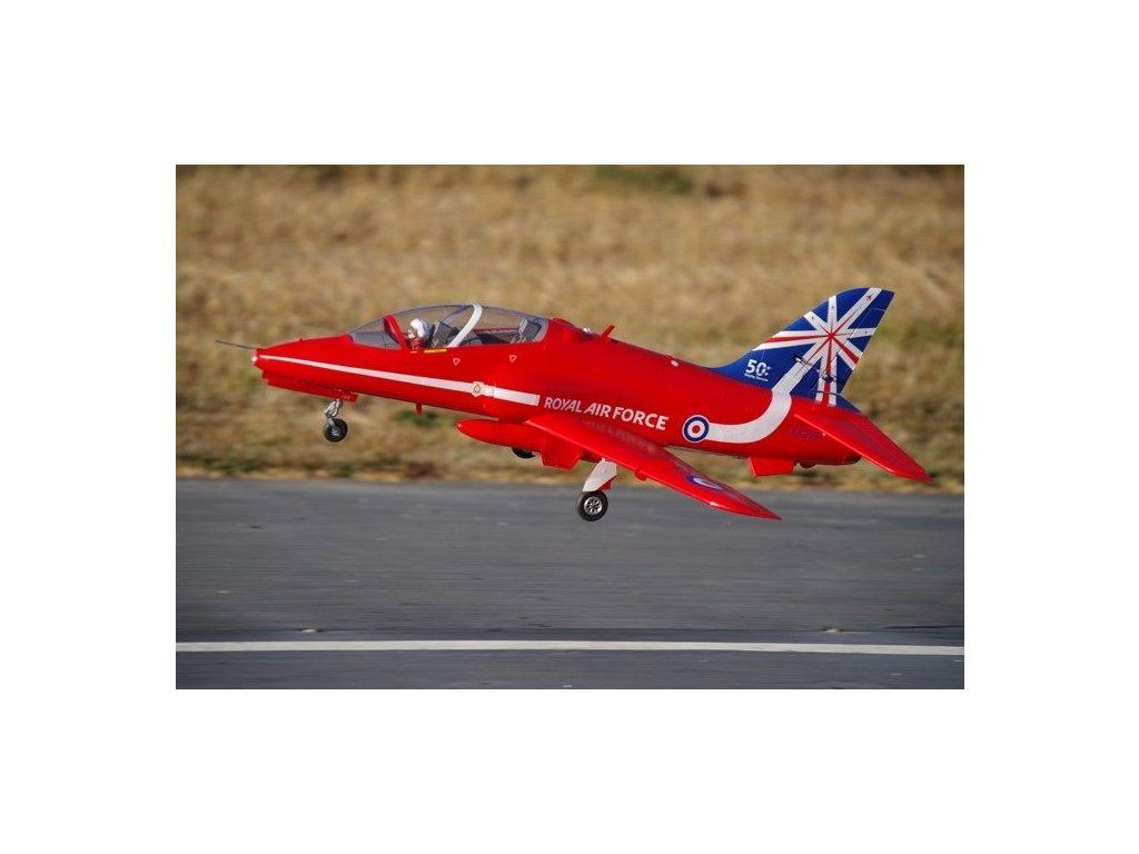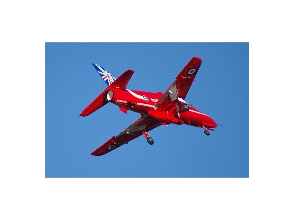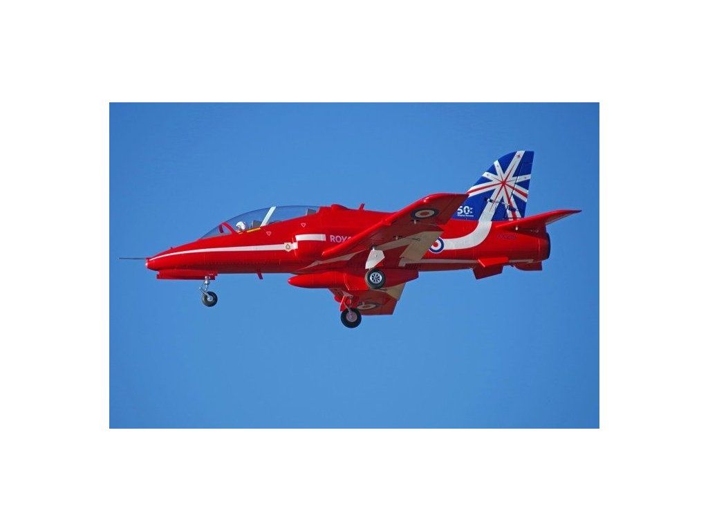 BAe Hawk je o něco mladší "kolega" našeho Albatrosu (prototyp vzlétl v roce 1974), s nímž sdílí velmi podobnou koncepci. Jediným zásadnějším rozdílem je mírně šípovité křídlo a především posunutí vstupních nasávacích otvorů daleko před náběžnou hranu křídla - britští soudruzi se tak vyhnuli problémům, se kterými zápolily ranné L-39. Na rozdíl od Albatrosu se Hawk v modernizovaných variantách vyrábí dodnes; jako licenční McDonnell Douglas T-45 Goshawk opatřený závěsem pro katapult a přistávacím hákem slouží dokonce k výcviku pilotů amerického námořnictva a námořní pěchoty. Stroj ve stavebnici představuje Hawk v barvách akrobatické skupiny Královského letectva, legendárních Red Arrows.