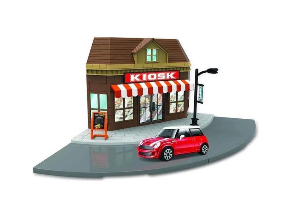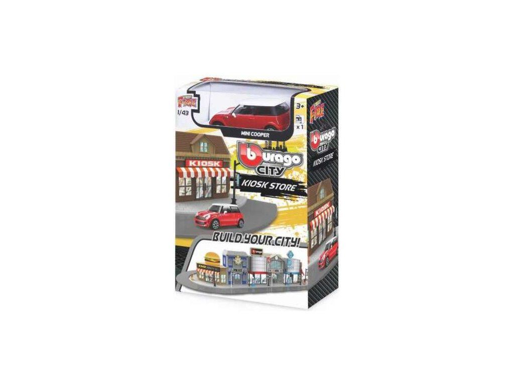 Herní set Bburago 18-31506 City - obchod s autíčkem Mini Cooper v měřítku 1:43 ( přibližně 10 cm velké ) pro malé milovníky aut. Set umožní malým řidičům si hrát, že jedou nakupovat. Balení obsahuje plastovou maketu obchodu, autíčko.