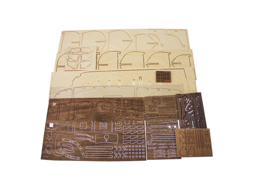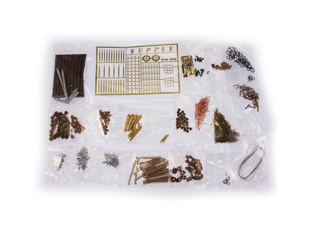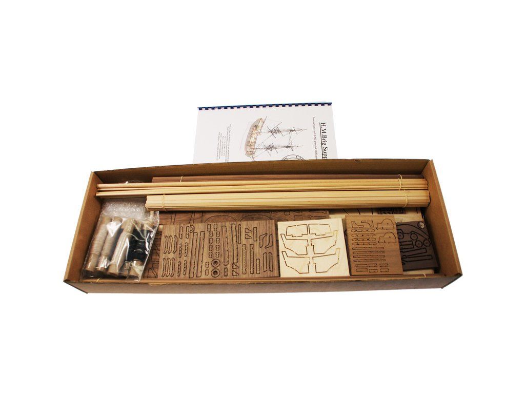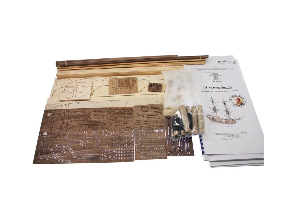 Obsahem balení je kompletní stavebnice lodi CALDERCRAFT H.M Supply briga 1759 1:64 kit. Balení obsahuje sadu překližkových dílů, sadu dřevěných lišt o různém průřezu, sáčky s drobnými díly, díly z mosazi, sadu výkresů a vícejazyčný manuál.