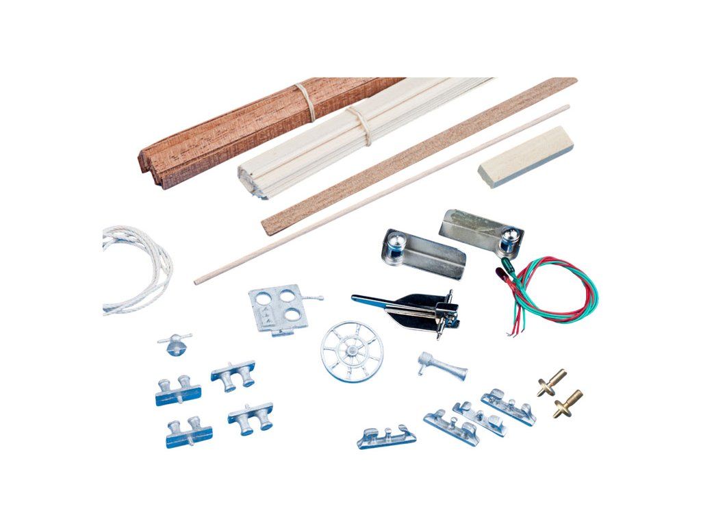 CALDERCRAFT Sea Commander sada příslušenství. V montážní sadě jsou všechna vnější součásti, jako jsou funkční polohová světla, kotva, volant, sloup atd.