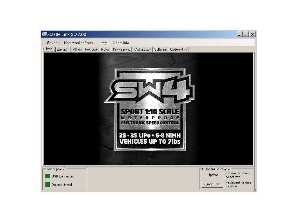 Obsahem balení je střídavý senzorový motor Castle Creations 1410 3800 ot/V s hřídelí 5 mm, regulátor Castle Creations Sidewinder 4 s technologií Cryo-Drive, šrouby pro upevnění motoru, senzorový kabel k motoru délky 20 cm, návod k použití v angličtině, češtině a slovenštině.