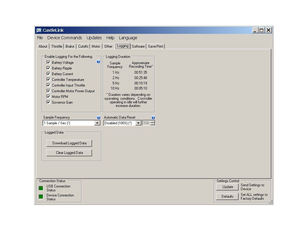 Pro pokročilé regulátoru potřebujete USB převodník Castle Link. Pro připojení akumulátoru a motoru potřebujete adekvátní silové konektory (regulátor je dodáván bez silových konektorů).