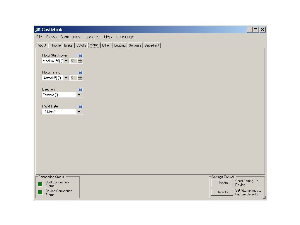 Pro pokročilé regulátoru potřebujete USB převodník Castle Link. Pro připojení akumulátoru a motoru potřebujete adekvátní silové konektory (regulátor je dodáván bez silových konektorů).
