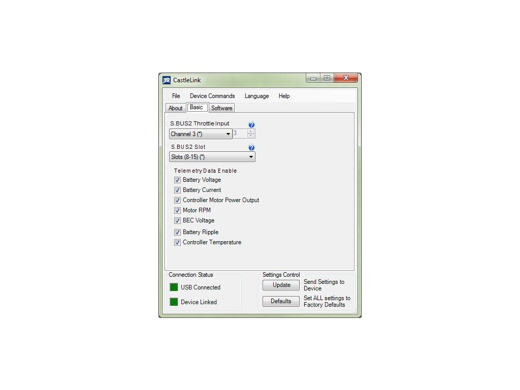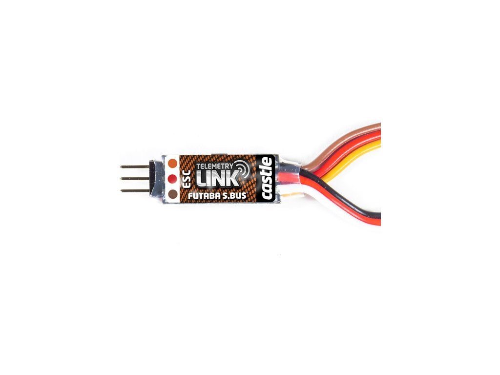 Telemetrický adaptér Castle Telemetry Link slouží k převedení protokolu Castle Live Link na protokol Futaba S.BUS2. Díky tomuto převodníku mohou majitelé RC souprav Futaba bez externích senzorů měřit napájecí napětí, otáčky motoru, a mnoho dalších údajů.