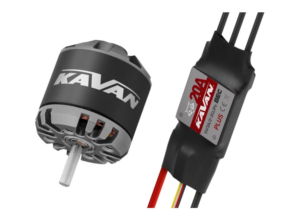 Combo set střídavého elektromotoru s rotačním pláštěm s regulátorem 20 A pro modely letadel: větroň 800g, trenér 700g, akro 600g, 3D 400g, KV1050 ot./min na V, napájení Lixx 2-3s, hřídel 3.175 mmDoplňkové parametry
