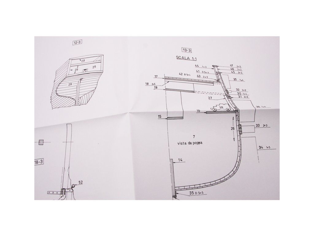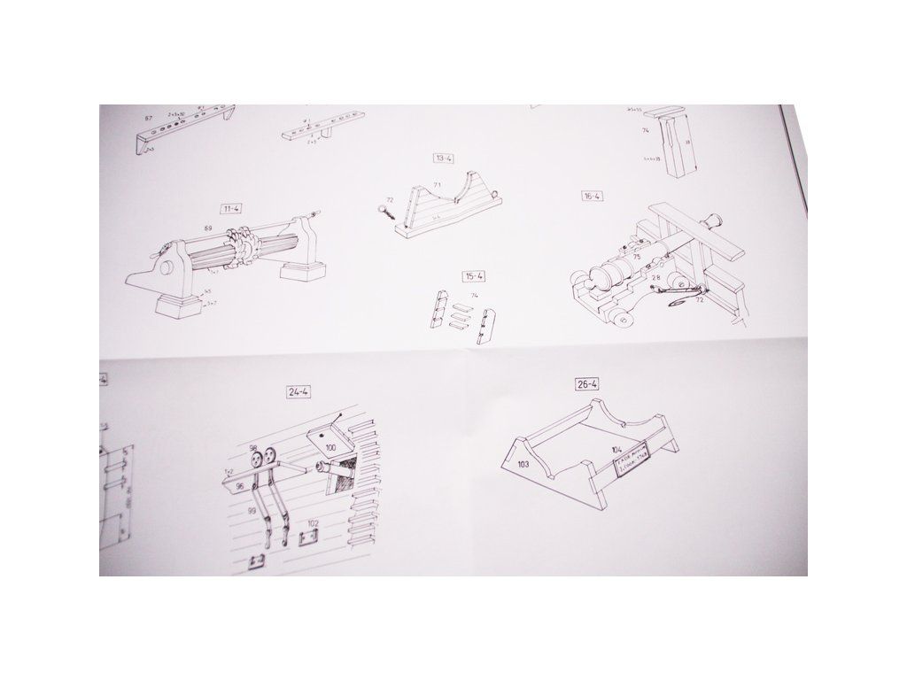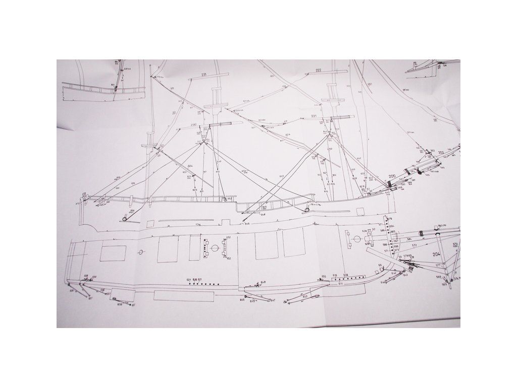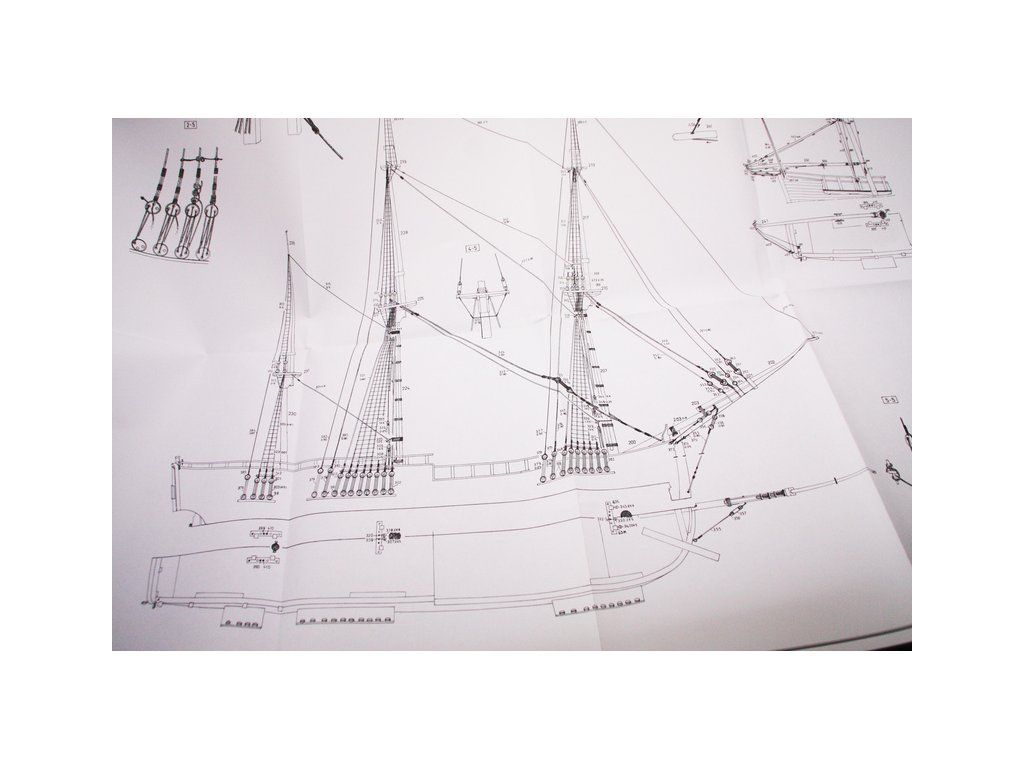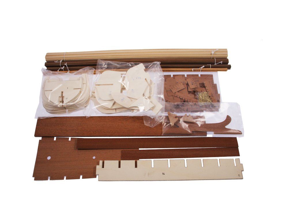 Balení obsahuje sadu překližkových dílů, sadu dřevěných lišt o různém průřezu, blistr s drobnými díly, díly z mosazi, sadu výkresů a vícejazyčný manuál.