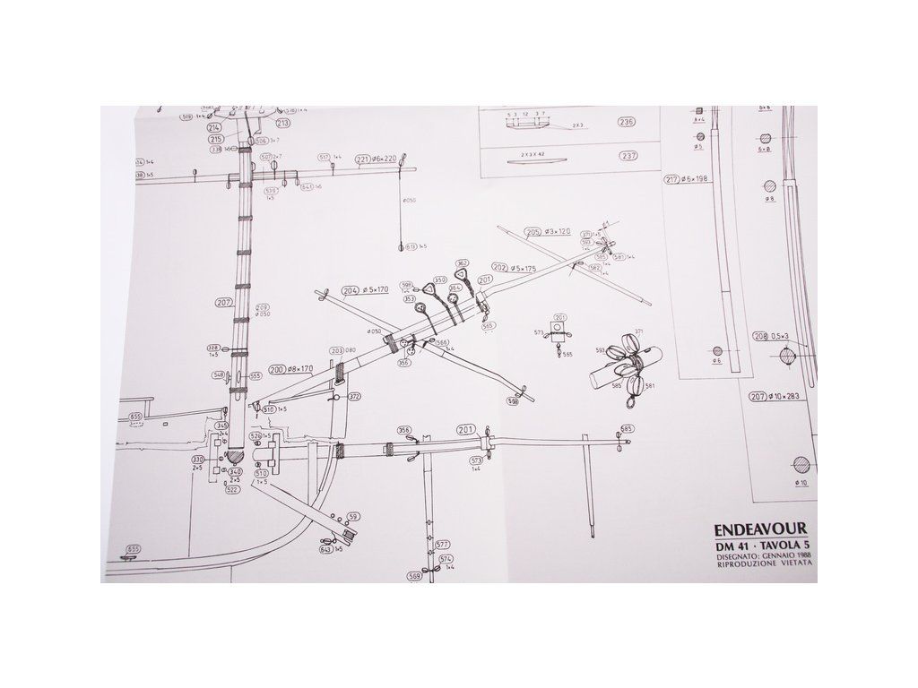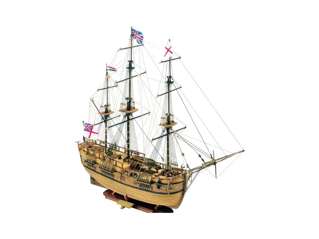 Stavebnice neplovoucího modelu COREL Endeavour v měřítku 1:60 z roku 1768. Loď s kapitánem Cookem v roce 1768 provedla expedici do jižních moří, k pobřeží Austrálie a odvážil se do jižního oceánu. V balení jsou dřevěné díly, lišty a množství kování, příslušenství, plány atd.
