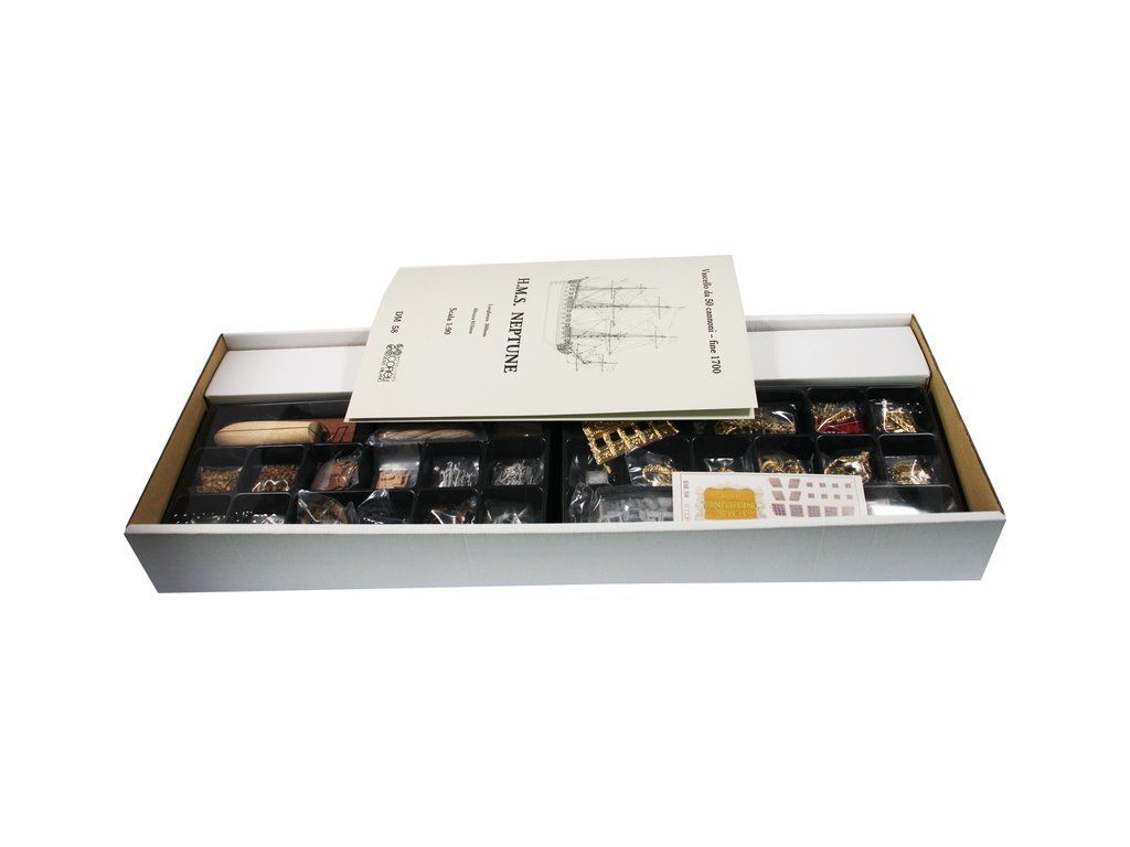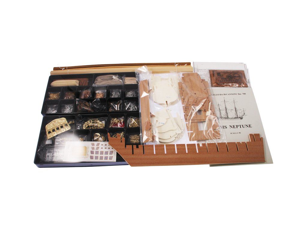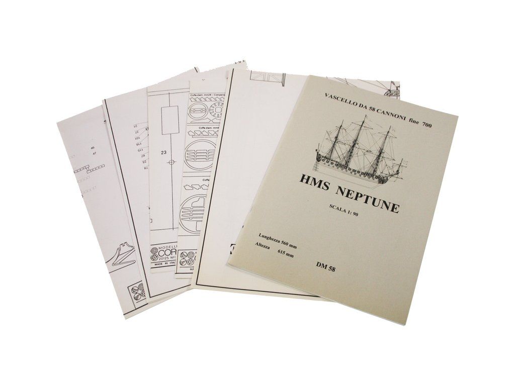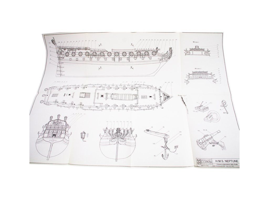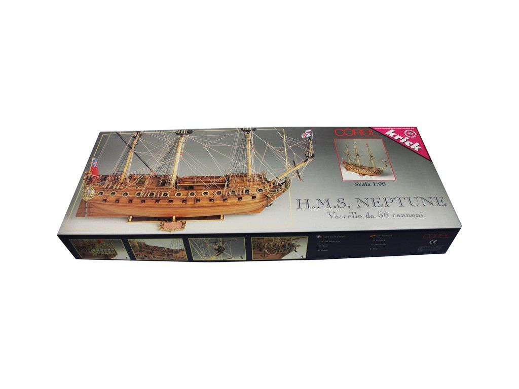 Neplovoucí model COREL H.M.S. Neptune v měřítku 1:90 ze 17. století. V té době bylo jen několik lodí vybaveno tolika ozdobami jako Neptun. Silná výzbroj 58 děl je typická pro tuto dobu konfliktů s holandskou flotilou. Plán je velmi detailní, v balení jsou dřevěné díly, lišty a množství kování, lanoví, plátno na plachty a další.
