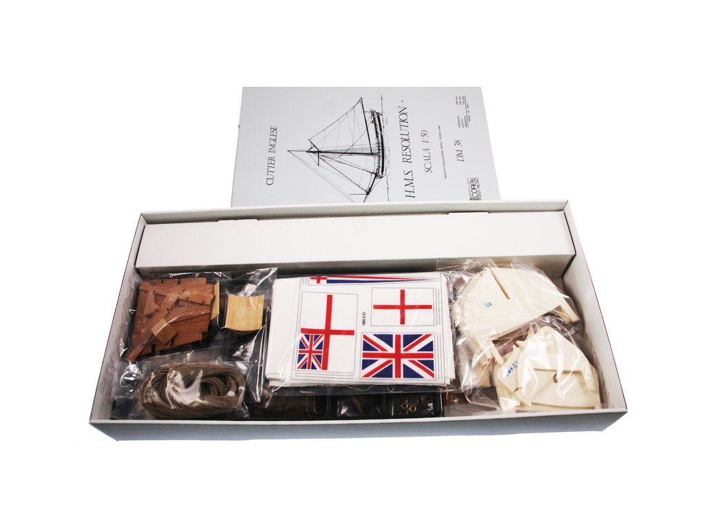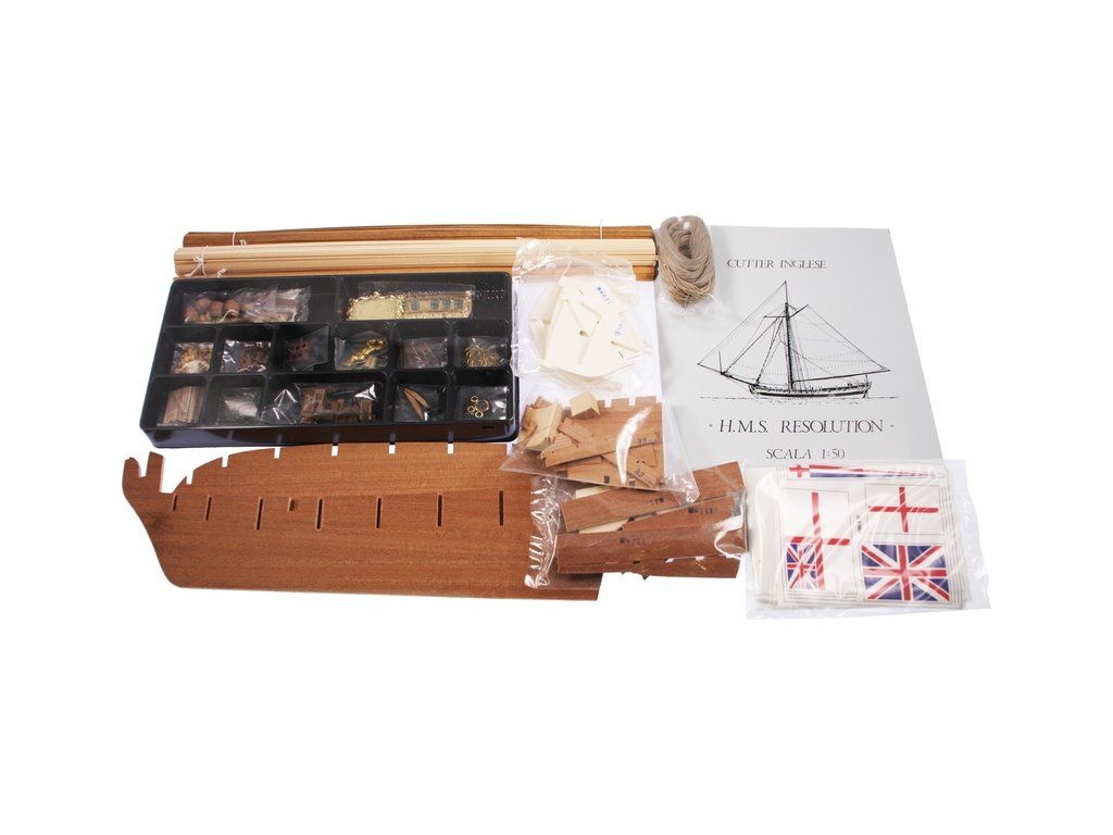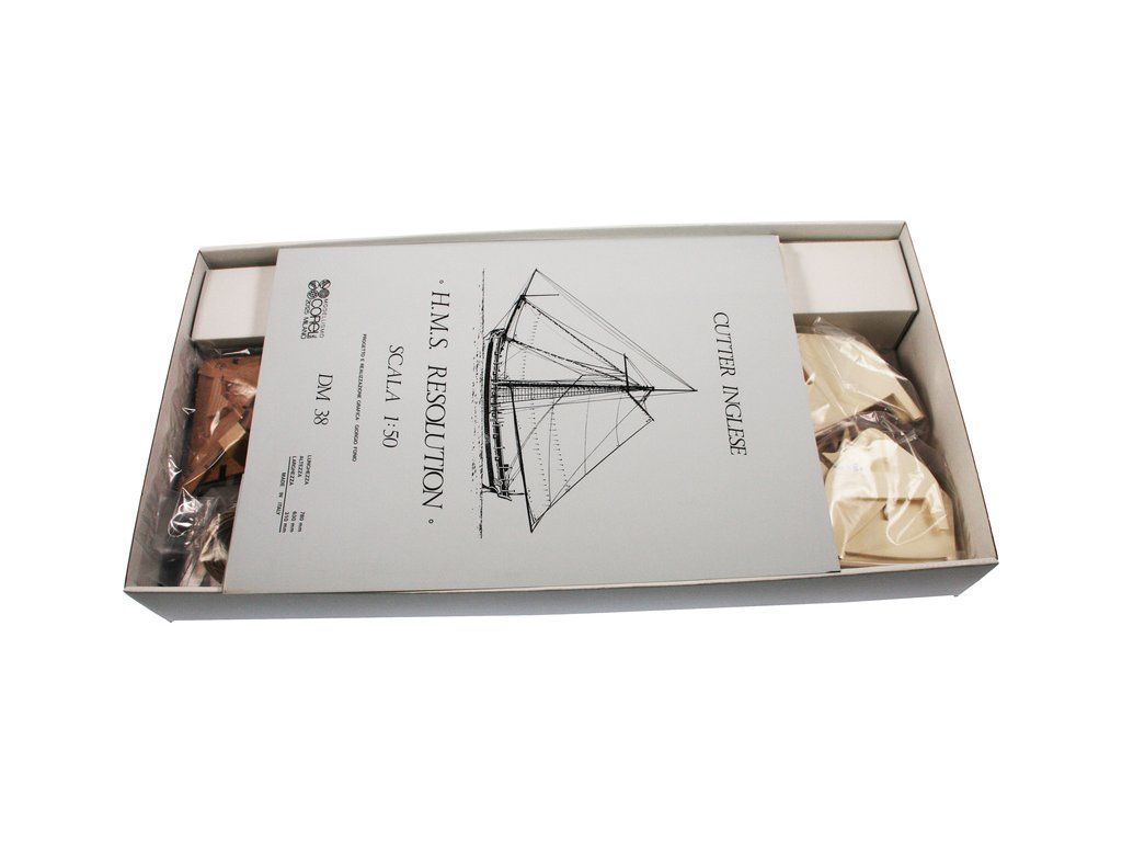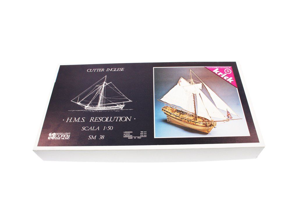 Stavebnice neplovoucího modelu COREL H.M.S. Resolution v měřítku 1:50 z roku 1700 byla britská válečná loď, charakteriskická velkou hlavní plachtou, dobrou výzbrojí, rychlostí a vynikající manévrovatelností. V balení jsou dřevěné díly, lišty a množství kování, lanoví, plátno na plachty, plány atd.