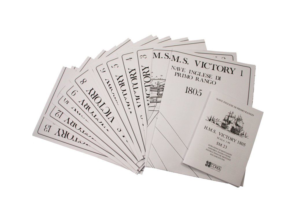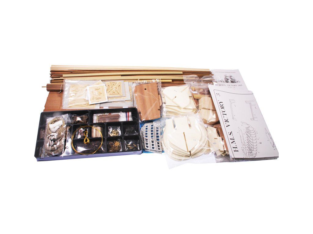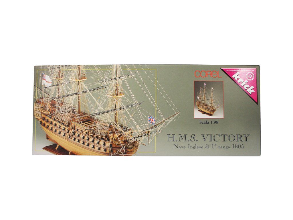 Stavebnice neplovoucího modelu COREL H.M.S. Victory v měřítku 1:98 z roku 1765. Stala se slavnou, když se 21. října 1805 zúčastnila jako vlajková loď admirála Nelsona v bitvě u Trafalgaru, ve které byl Nelson zabit. V balení jsou dřevěné díly, lišty a množství kování, příslušenství, plány atd.