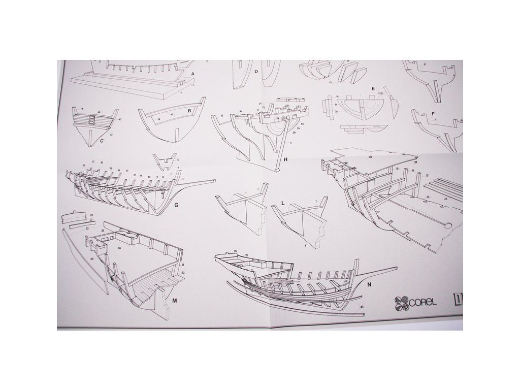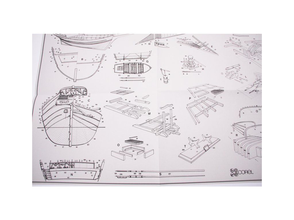 Balení obsahuje sadu překližkových dílů, sadu dřevěných lišt o různém průřezu, blistr s drobnými díly, díly z mosazi, sadu výkresů a vícejazyčný manuál.