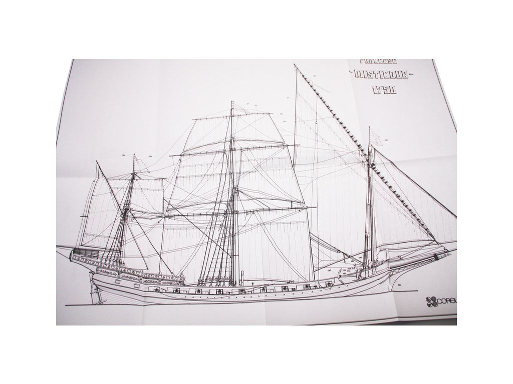 Stavebnice neplovoucího modelu COREL Mistique v měřítku 1:50 z 18. stol. Loď třídy Polacker do které patřil Mistique, byly charakteistické 3-stěžňovým uspořádáním. I když byl postaven jako obchodní loď, byl Misticque vyzbrojen 18 děly. V balení jsou dřevěné díly, lišty a množství kování, lanoví, plátno na plachty, plány atd.