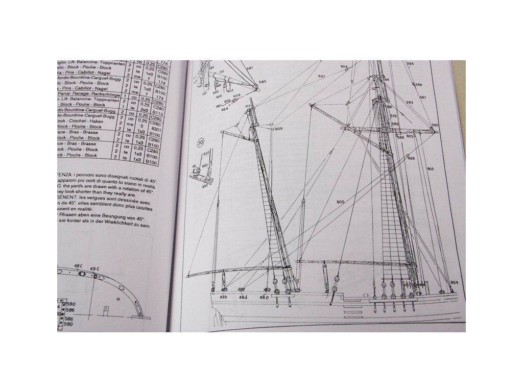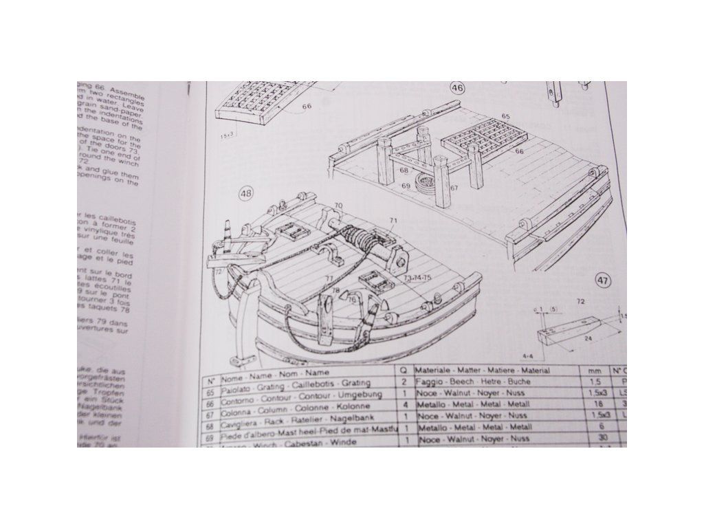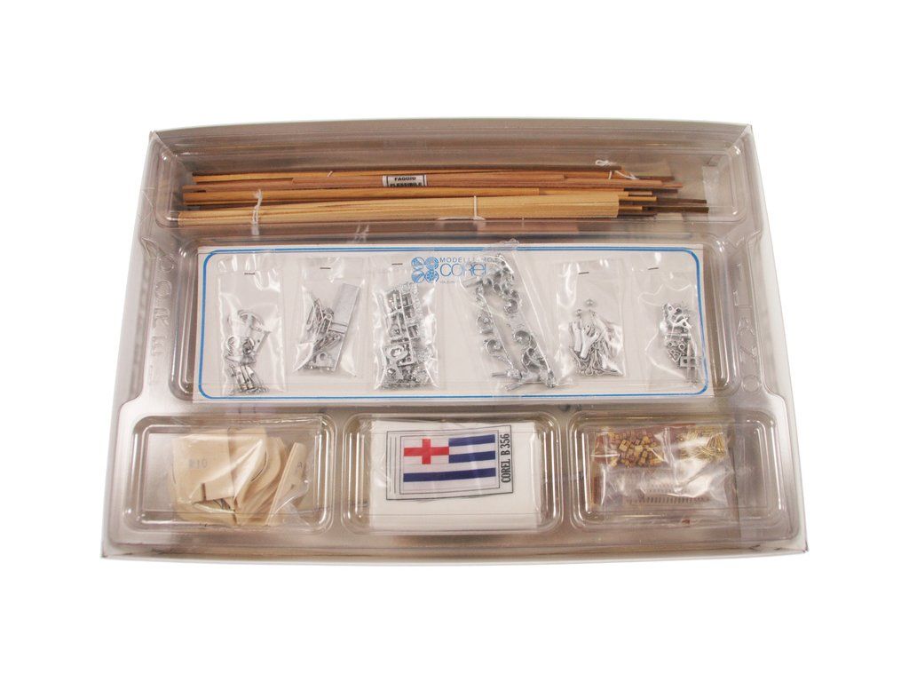Balení obsahuje sadu překližkových dílů, sadu dřevěných lišt o různém průřezu, blistr s drobnými díly, díly z mosazi, český návod ke stavbě, vícejazyčný manuál s obrázky a výkresy.