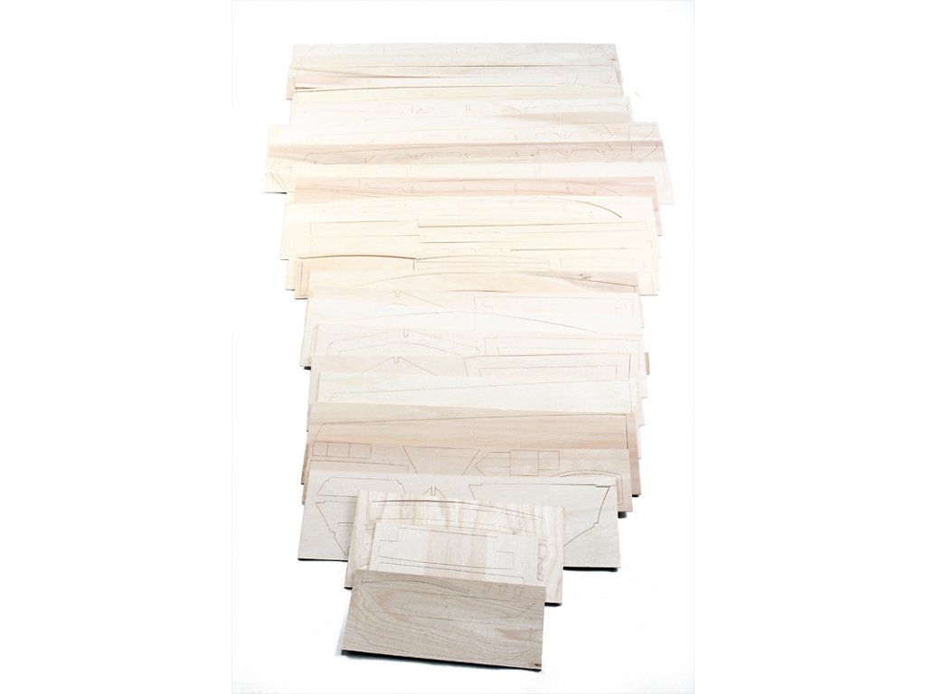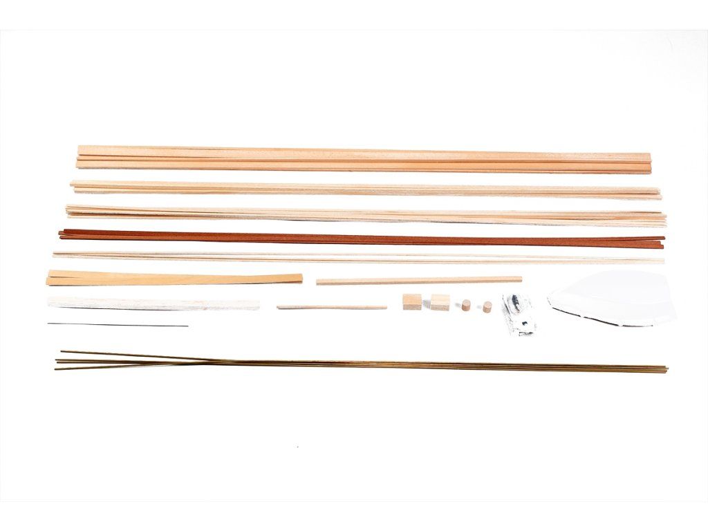 Stavebnice obsahuje: předseknuté překližkové díly, předseknuté díly z mahagonové a březové překližky, lipové plaňky, odlévané kovové díly a další maketové příslušenství, stavební plán obsahující třípohledový výkres lodi, návod ke stavbě.