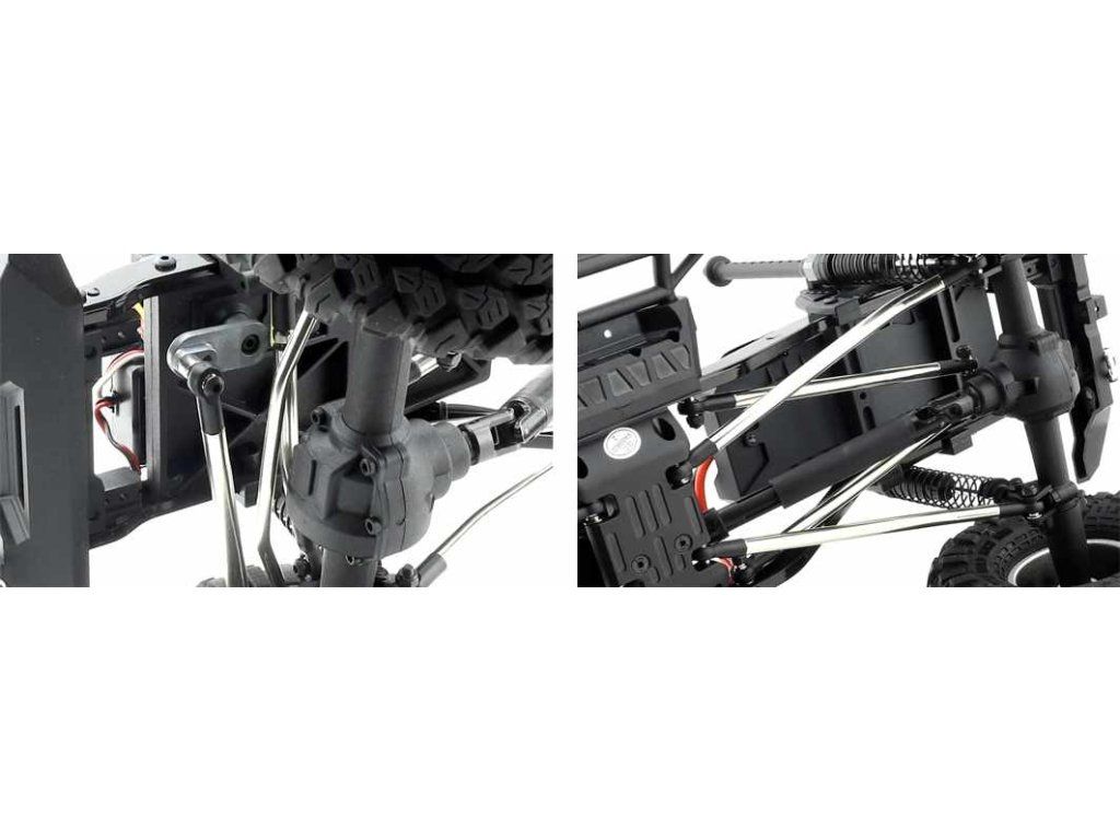 - Multi-link zavěšení s 6mm kovovými linky, design s panhard tyčí, nastavitelné kovové C-type žebřiny podvozku.