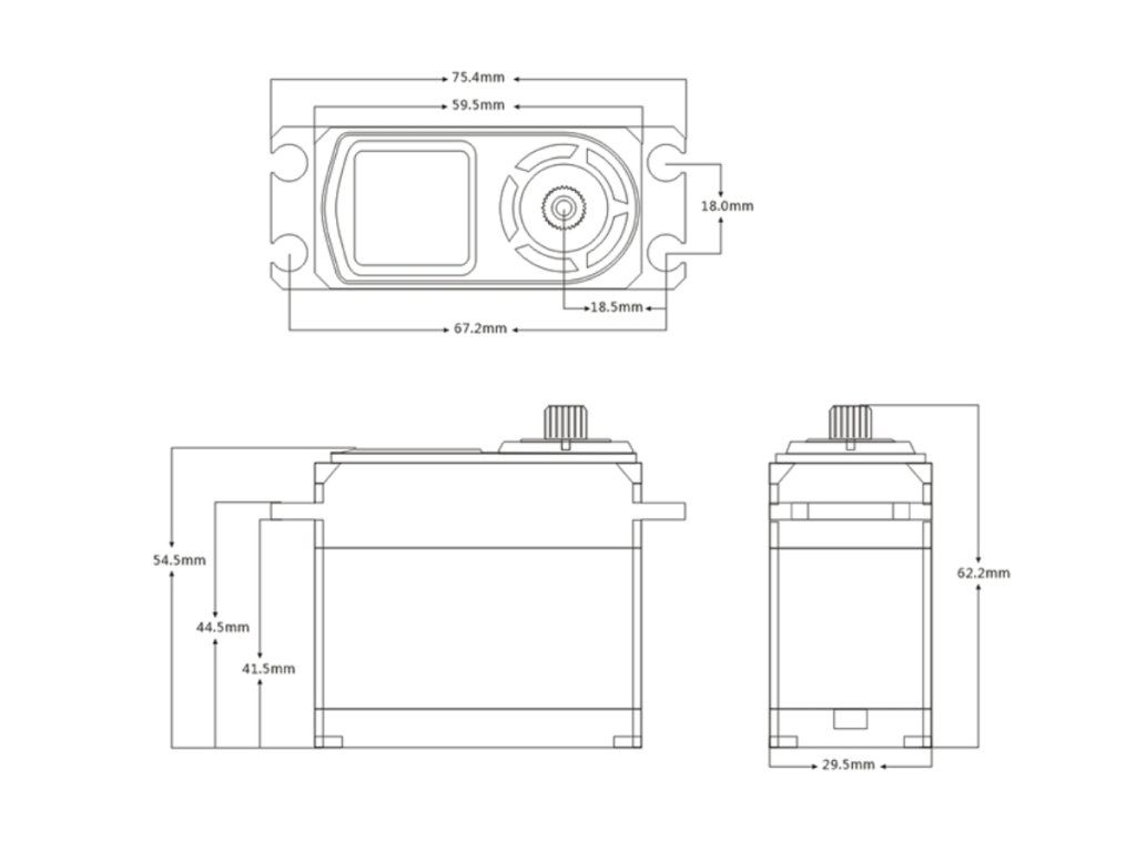 - Kroutící moment při zastavení (7,4 V): 78,0 kg.cm