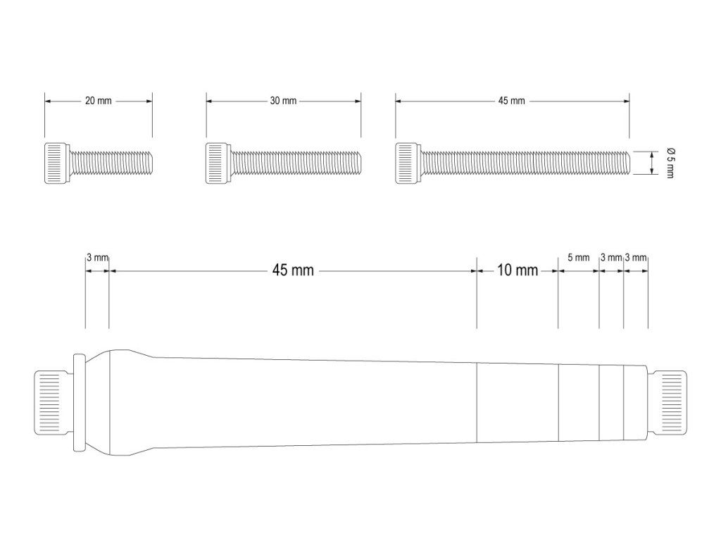 - 4x šroub imbusový s válcovou hlavou, M5, délka 45 mm