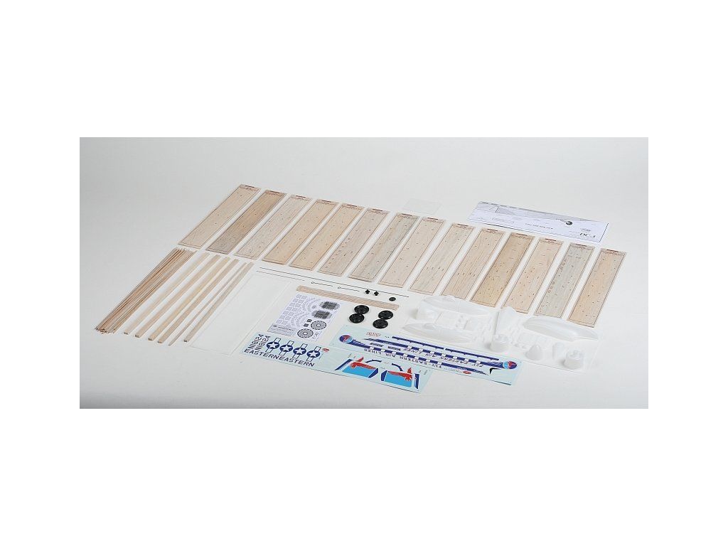 Stavebnice obsahuje: balsové předseknuté díly, balsové nosníky, předseknuté díly z plastikové překližky, vakuově lisované maketové díly (kryt motorů, motory, příď trupu...), plastová kola, ocelovou strunu na podvozek a další drobné díly, potahový papír, aršík mokrých obtisků, stavební plán.