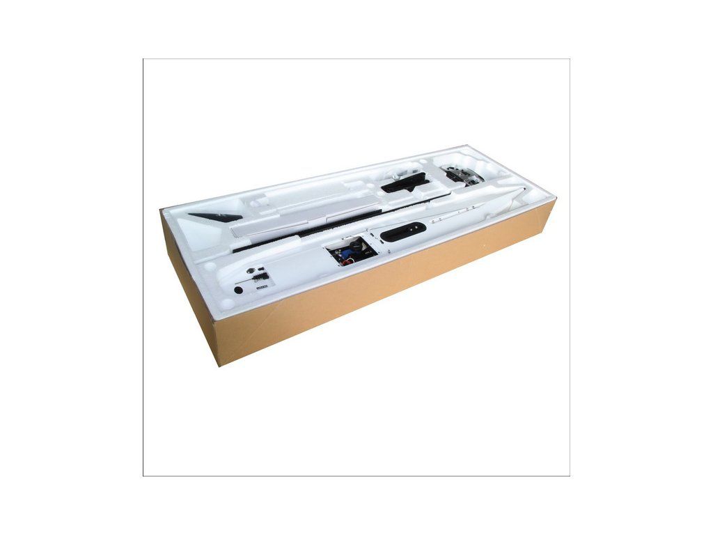 Balení obsahuje kompletně sestavený trup s nainstalovanými komponenty: digitální servo řízení, 9kg servo navijáku, stěžeň s kompletními plachtami (plachty jsou mezi kartony s nápisem Sails inside), kýl se zátěží, potřebné příslušenství pro dokončení lodi, návod k použití, stojánek, návod v češtině, manuál.