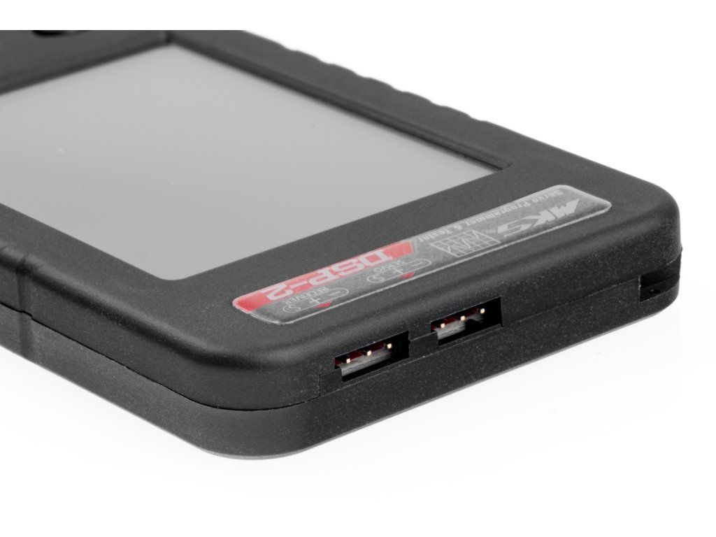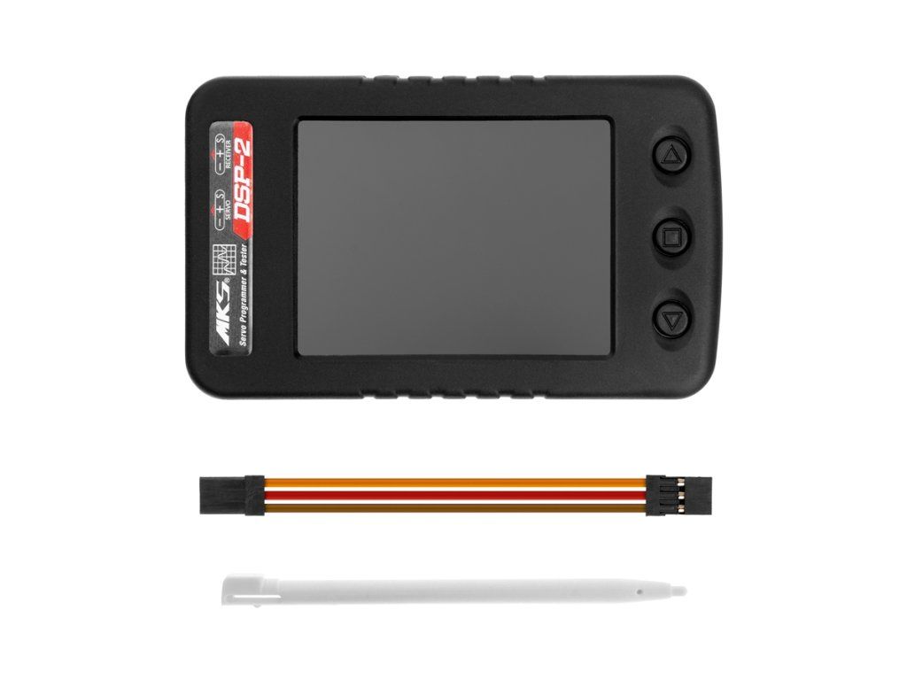 Autonomní programátor/tester serv MKS s rozšířenými možnostmi programování. Díky dotykovému displeji máte k dispozici nástroj pro programování a testování s komfortní obsluhou použitelný kdykoliv a kdekoliv. Servo je při programování napájeno z přijímačového akumulátoru připojeného k programátoru (5,1-15 V dle typu serva a jeho provozního napětí). Všechny parametry se nejprve nastaví na displeji DSP-2 a následně nahrají do vašeho serva. Programátor také může pracovat jako servotester s volitelnou opakovací frekvencí použitelný pro všechna serva - analogová i digitální, s neutrálem 1,5 ms i úzkopásmová 760 µs. Může také měřit šířku pulsů řídícího signálu pro klasická serva (PWM) na kanálových výstupech přijímačů.