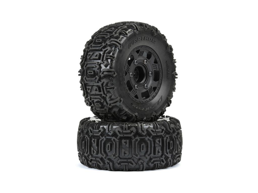 Kompletní kola Duratrax pro RC modely aut 1:10 (SCT). Rozměr ⌀109x48 mm. Disk Ripper má černou barvu. Pneumatiky Warthog 2.2"/3.0" SC, tvrdost směsi M2 - střední. Vložka Closed Cell. Unašeč je šestihran 14 mm (vyměnitelný adaptér).