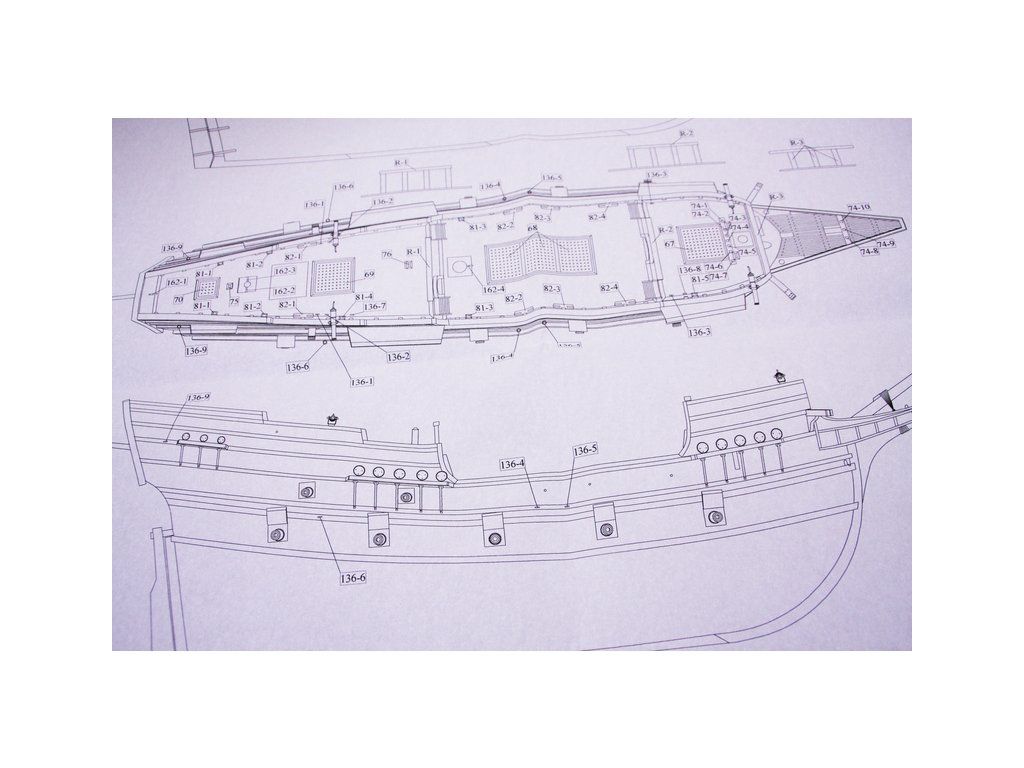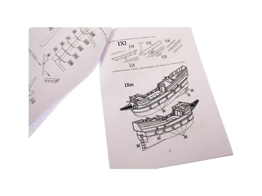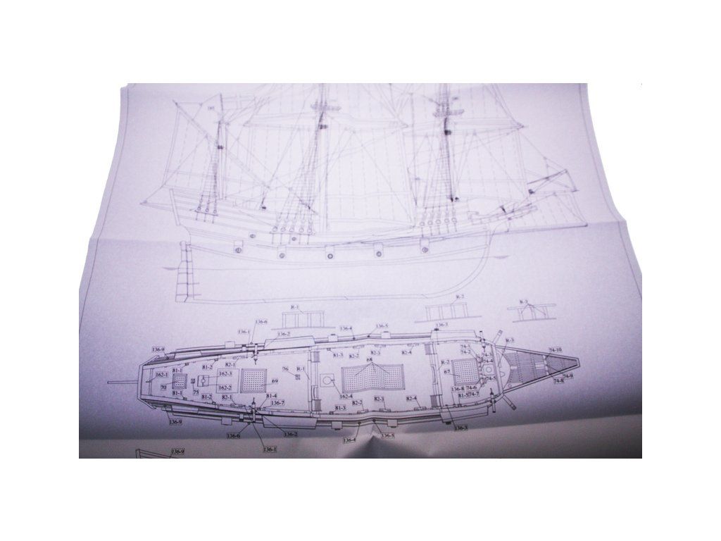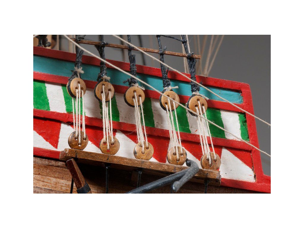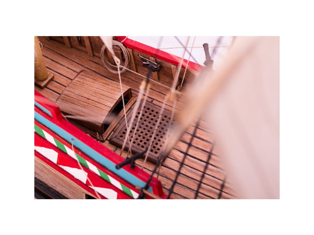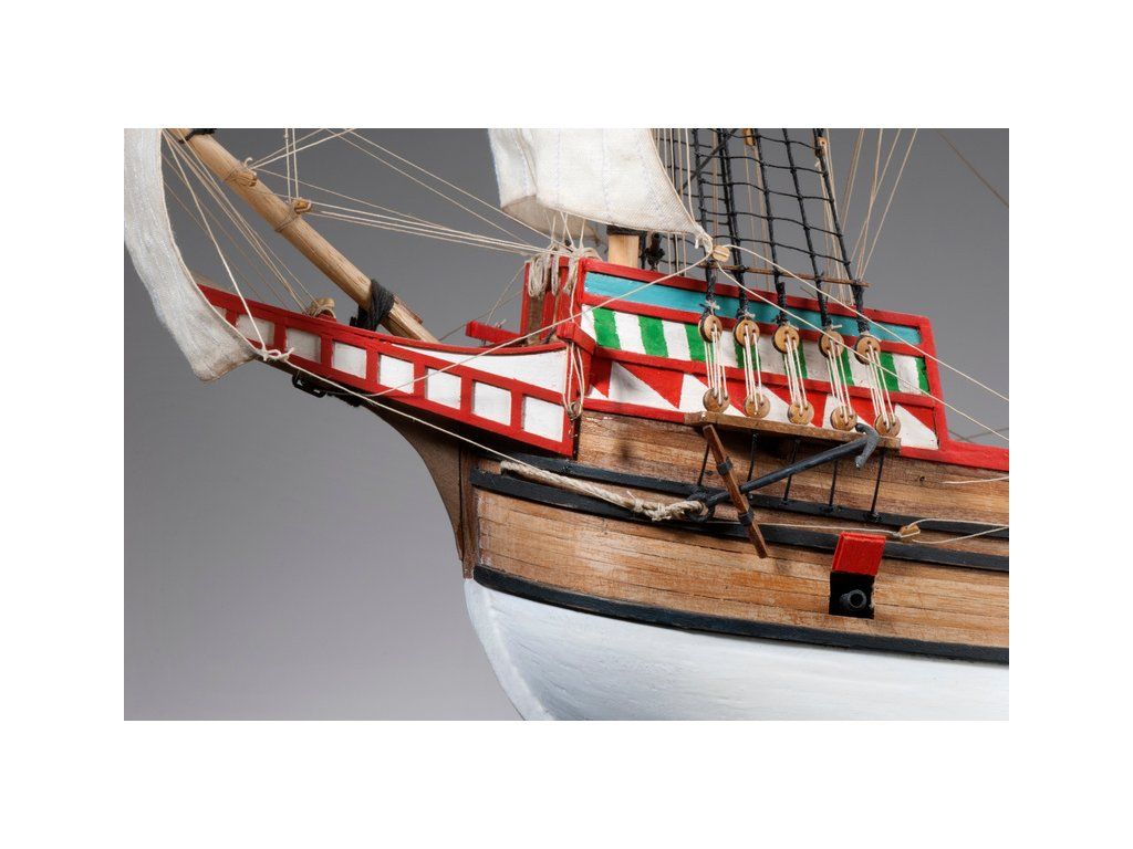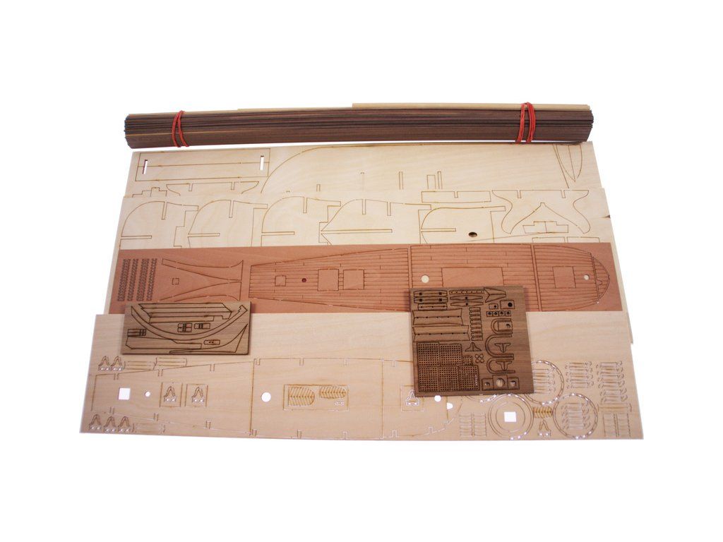 V balení stavebnice makety je sestava laserem vyřezaných desek z překližky a kompletní dřevěné součásti, mosazné součásti, prkna a lišty pro palubu, předtištěné vlajky, látku pro plachtu a dostatek lanoví na celou loď. Sestavení pomáhá podrobný plán stavby a přesné pokyny, manuál EN, FR, SP, CZ.