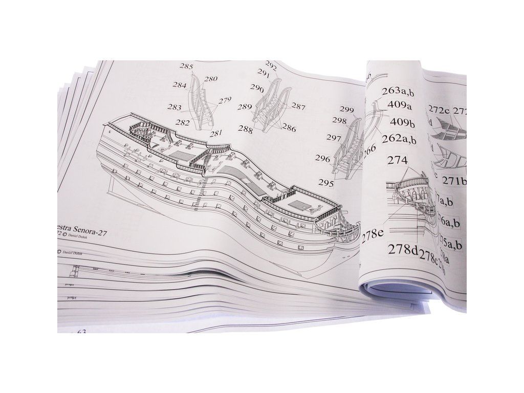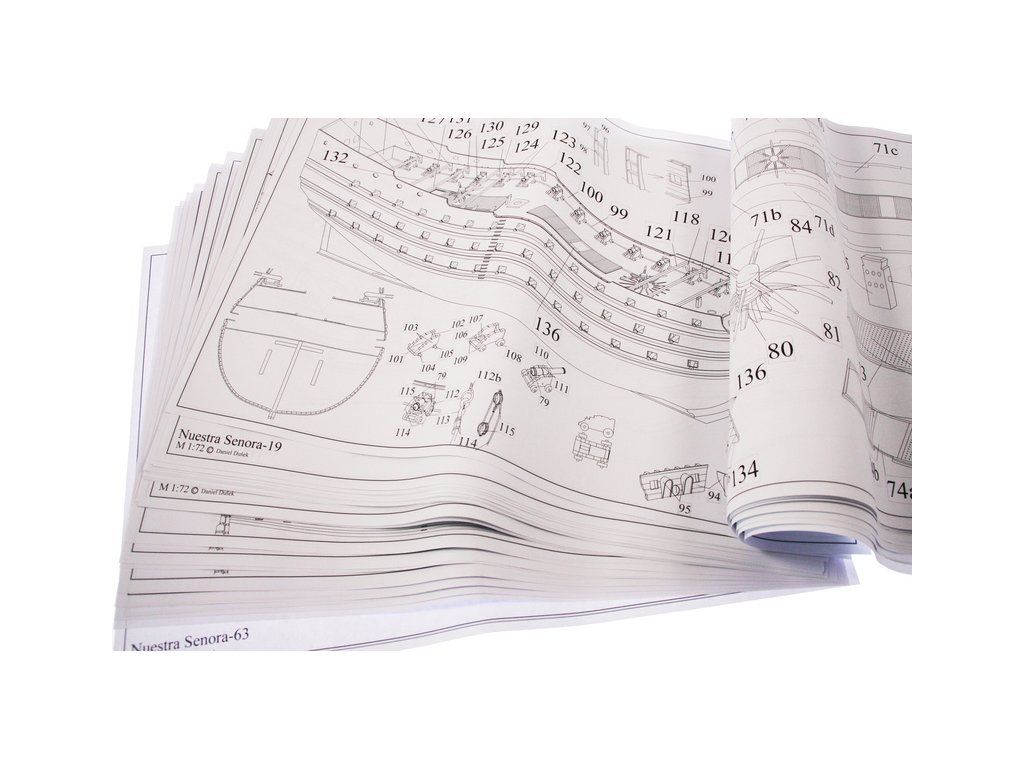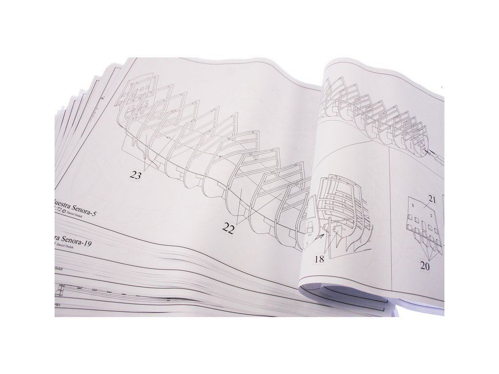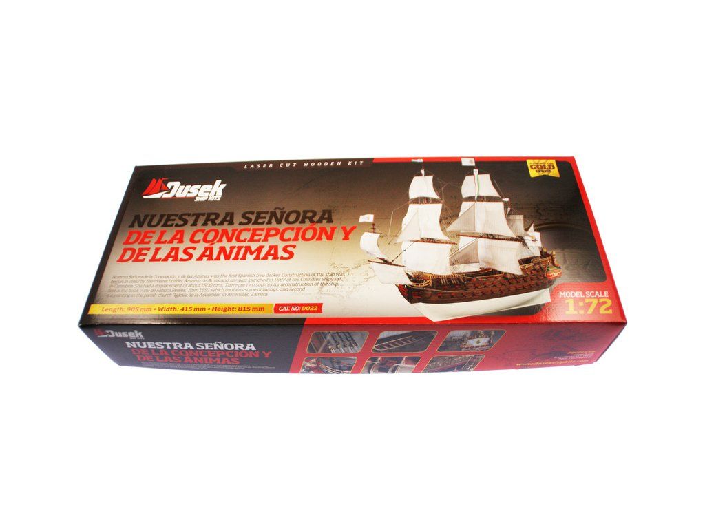 Stavebnice velké makety lodi Nuestra Senora z roku 1687 v měřítku 1:72. Délka modelu lodi je 905mm, stavba převážně ze dřeva s drobnými doplňky, součástí je stavební plán a pokyny s mnoha podrobnými obrázky. Jde o náročnou stavbu, určeno pro zkušené modeláře.