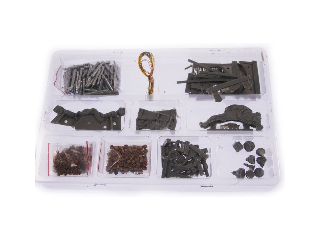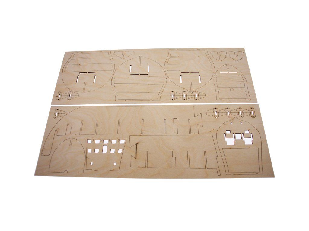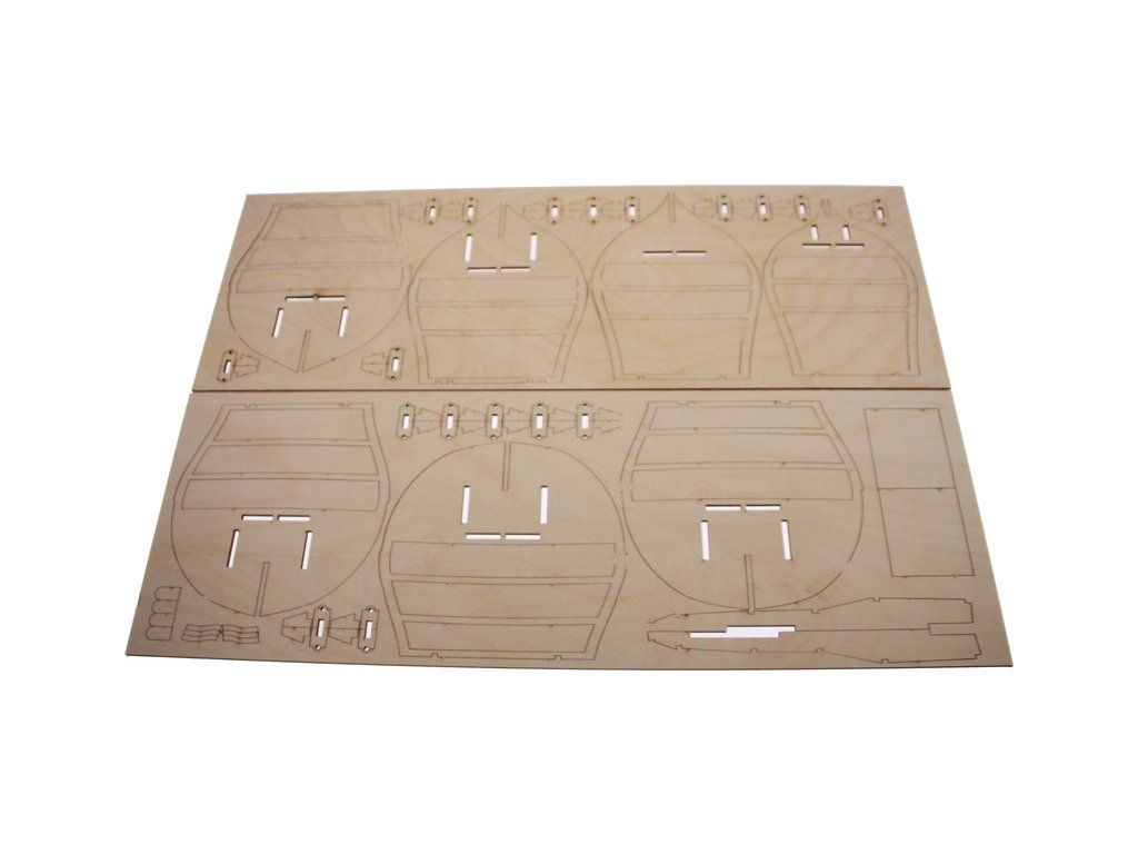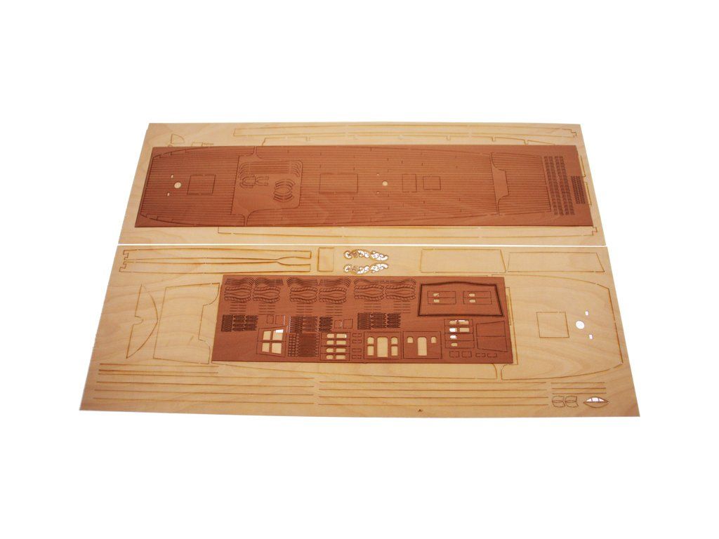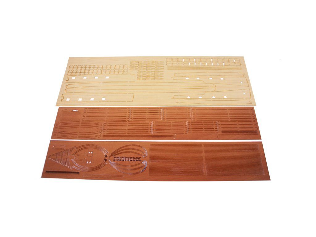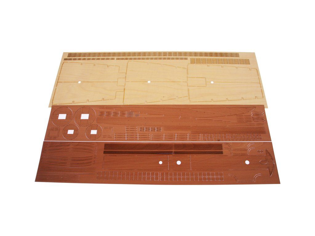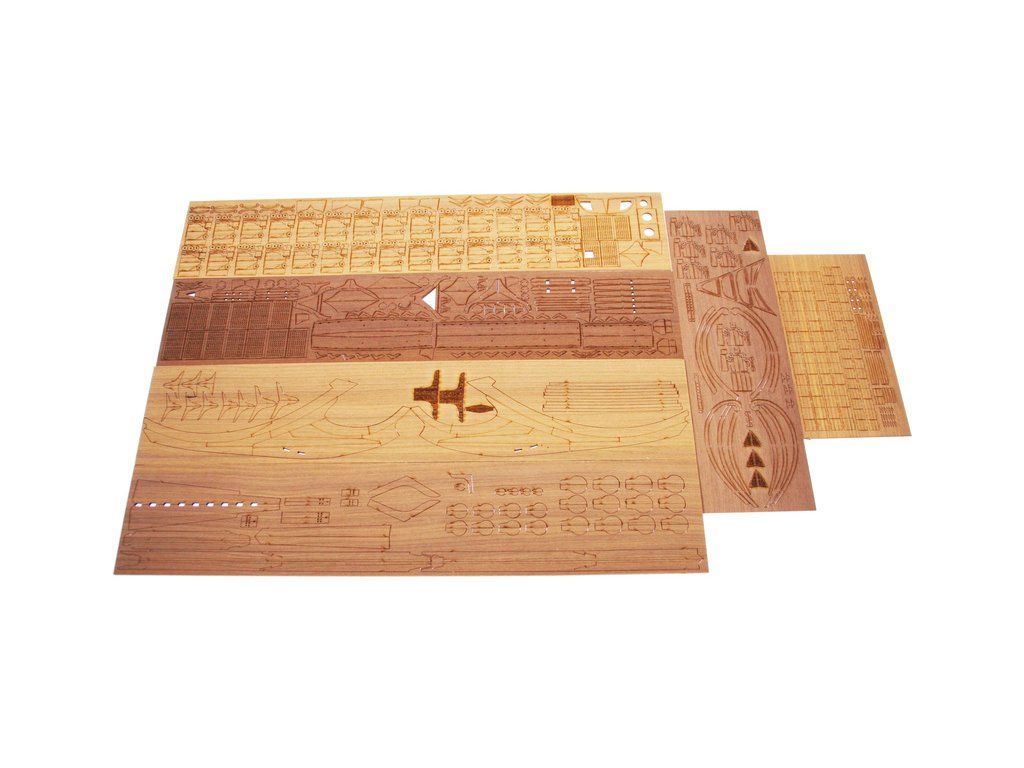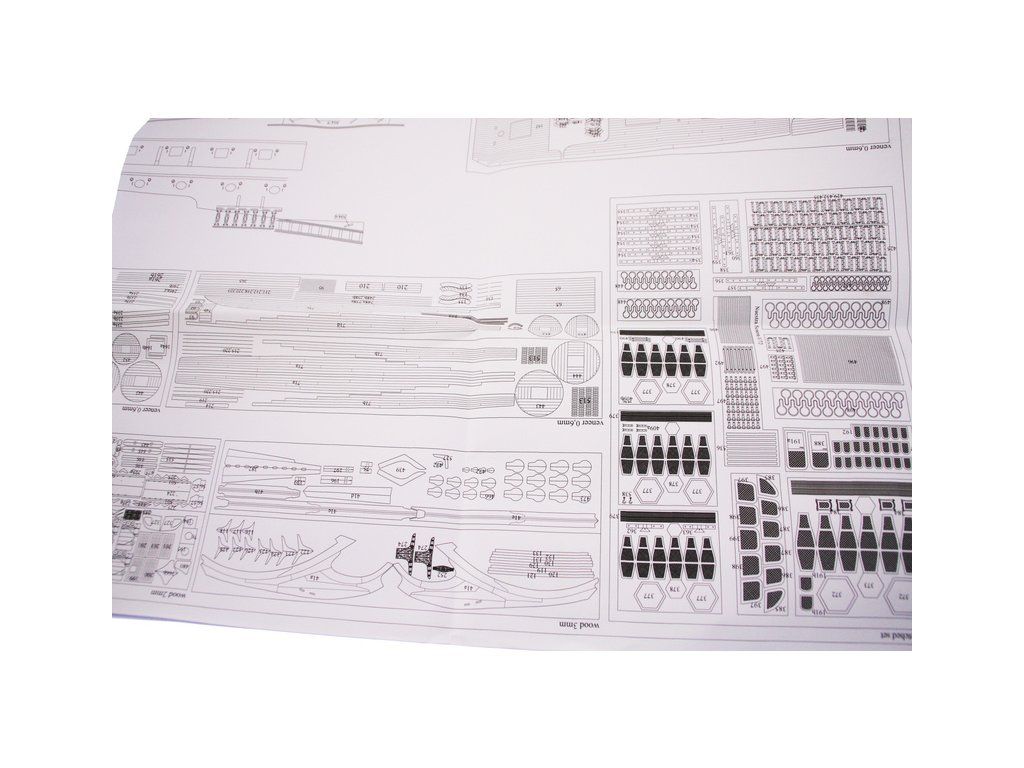 V balení stavebnice makety je sada laserem vyřezaných desek z překližky, svazky ličt a nosníků různých rozměrů a kompletní dřevěné součásti, mosazné součásti, prkna a lišty pro palubu, předtištěné vlajky, látka pro plachtu a lanoví na celou loď. Manuál EN.