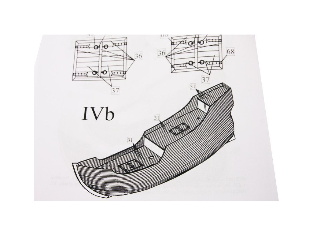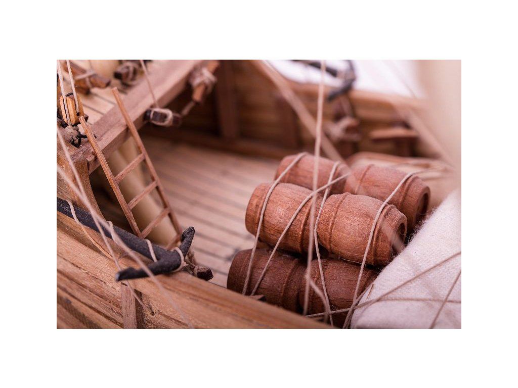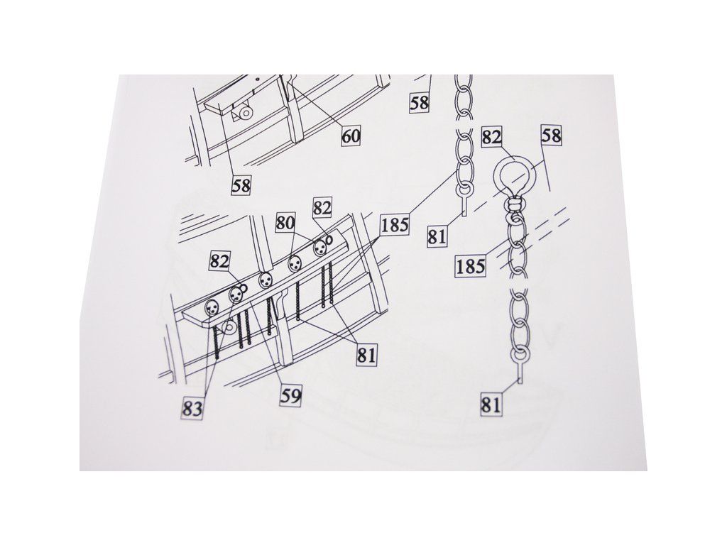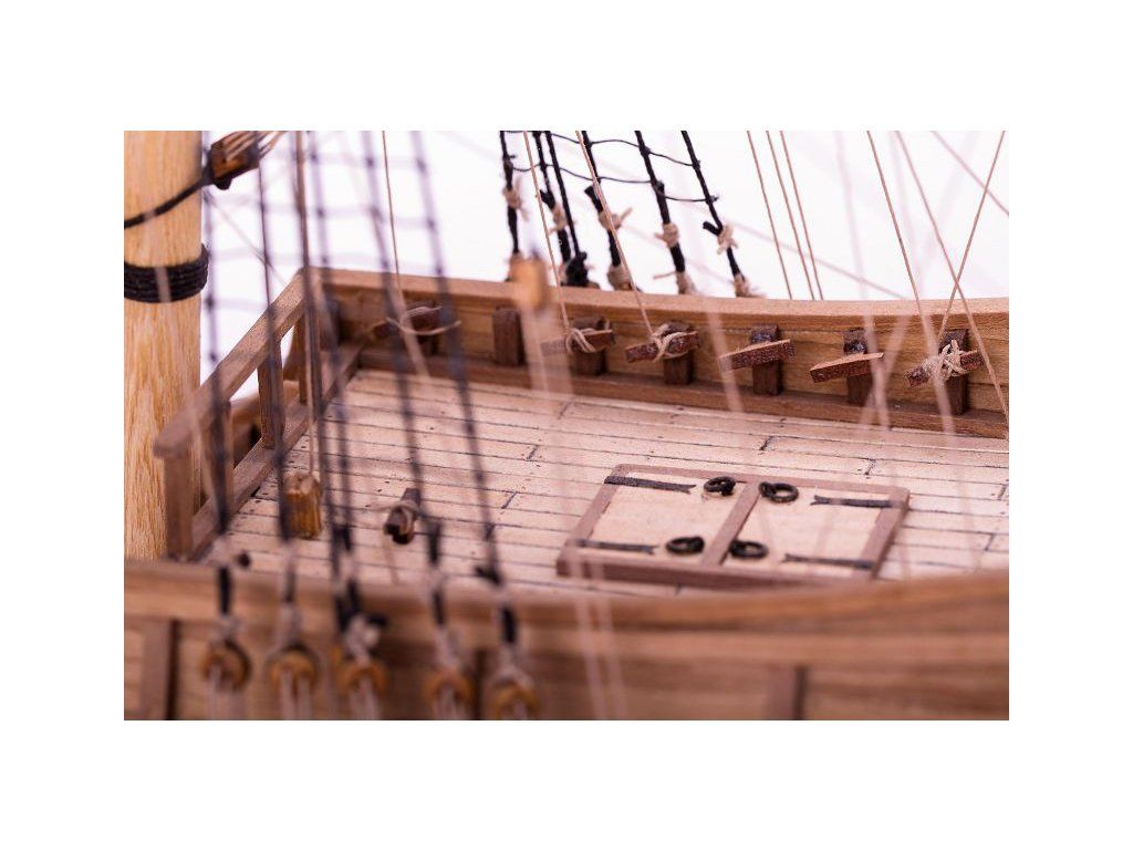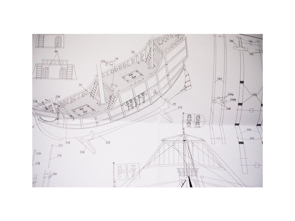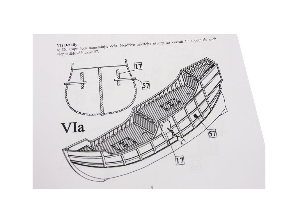 V balení stavebnice makety je sada laserem vyřezaných desek z překližky a kompletní dřevěné součásti, mosazné součásti, prkna a lišty pro palubu, předtištěné vlajky, látku pro plachtu a dostatek lanoví na celou loď. Sestavení pomáhá podrobný plán stavby a přesné pokyny, český manuál EN, FR, SP, CZ.