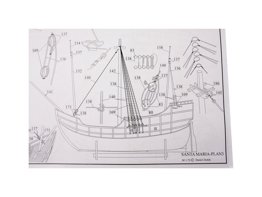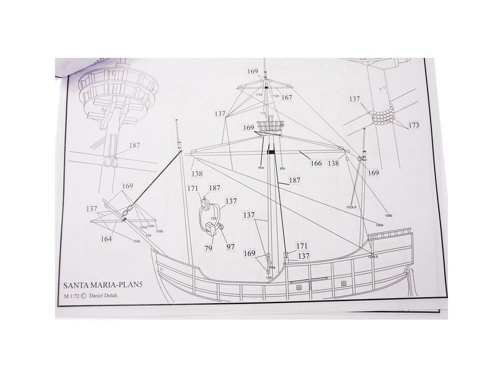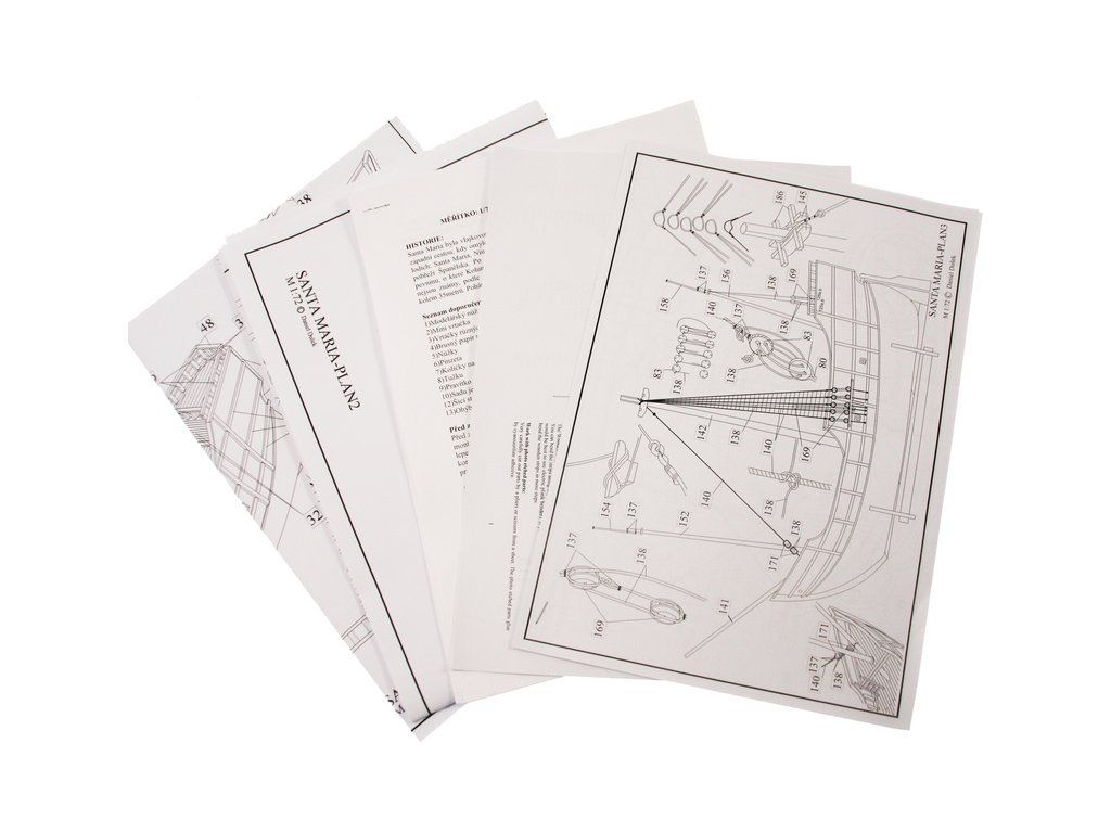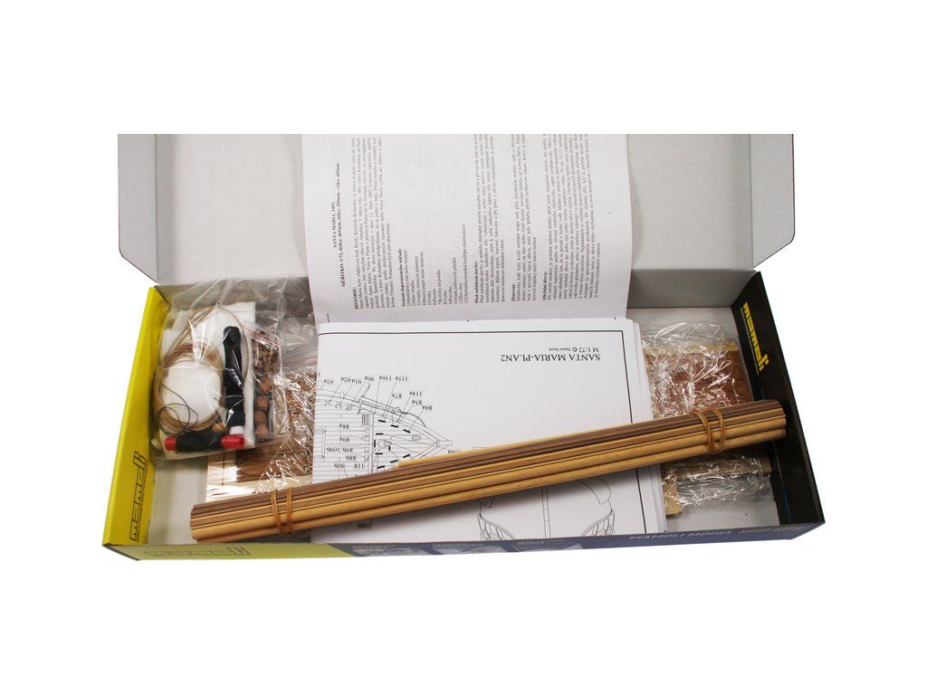 Stavebnice neplovoucí makety Santa Maria z roku 1492 v měřítku 1:72 Kryštofa Kolumba. Délka modelu lodi je 465 mm, stavba převážně ze dřeva s řadou různých doplňků, součástí je stavební plán a pokyny s mnoha podrobnými obrázky.