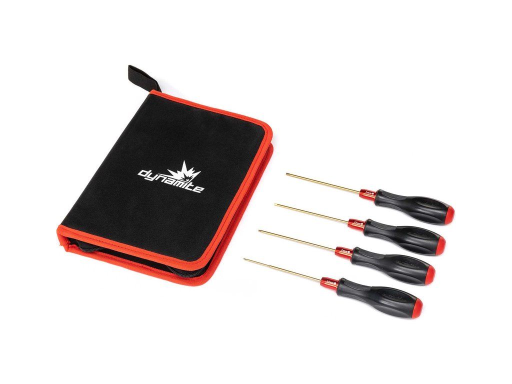 Sada šroubováků imbus Metrická 4 ks, rozměry šestihranů: 1.5mm, 2mm, 2.5mm a 3mm. Sada od Dynamite je ergonomicky navržena a skvěle vypadá! Má tvarovanou plastovou rukojeť s otočnou koncovkou pro pohodlné šroubování. Pouzdro na nářadí s logem.