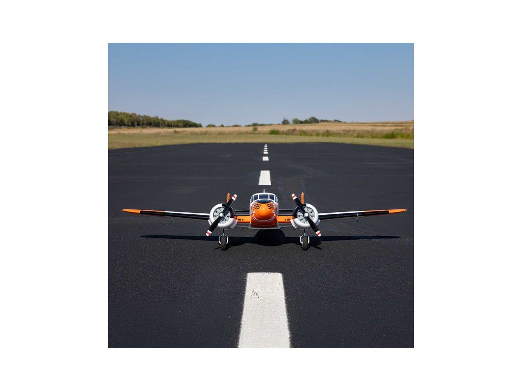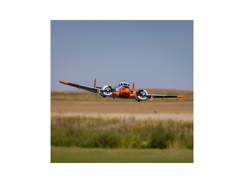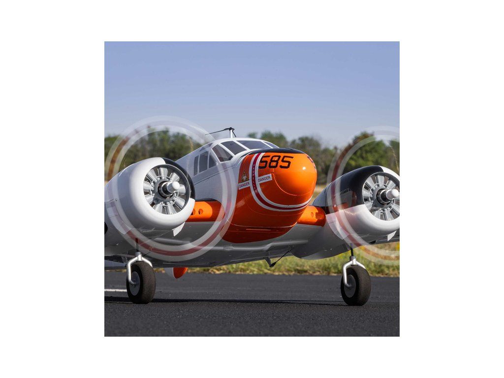 Detailní polomaketa dvoumotorového RC modelu letadla od E‑flite, Beechcraft D18 o rozpětí 1.5 metru. Výborné letové vlastnosti a snadné ovládání, díky stabilizaci SAFE, AS3X a technologii Smart. Nainstalované LED osvětlení, vztlakové klapky, elektrický podvozek. Verze BNF Basic s přijímačem.