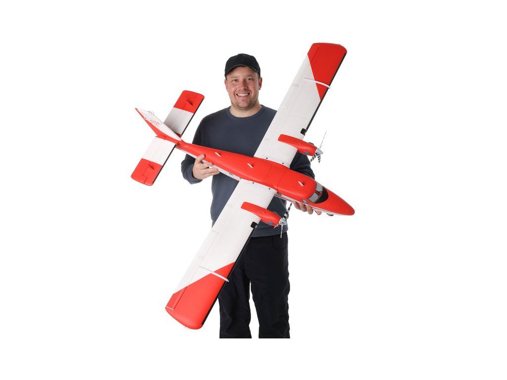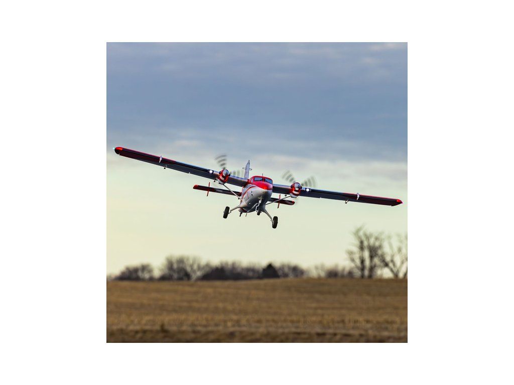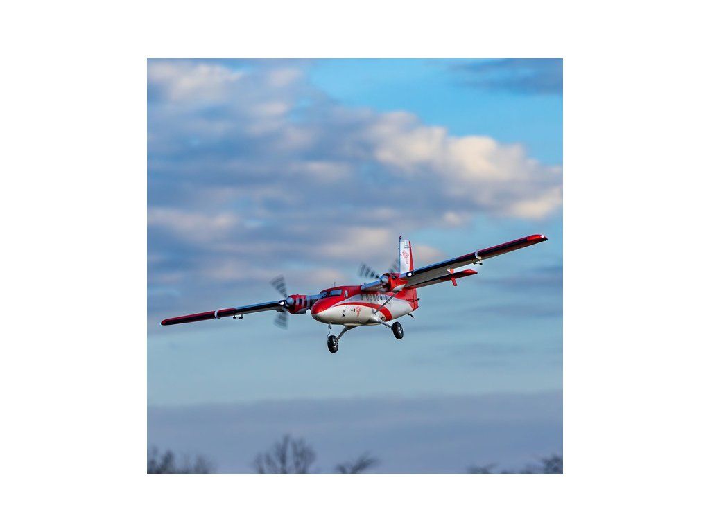 Dvoumotorový RC model letadla E-flite DHC-6 Twin Otter 1.4m, maketově zpracovaný podle užitkového letadla. Střídavé motory, napájení 3-4S LiPo, možnosti STOL (krátký start a přistání), vztlakové klapky, LED osvětlení, podpora technologie Smart. Stabilizace AS3X+ a SAFE select.
