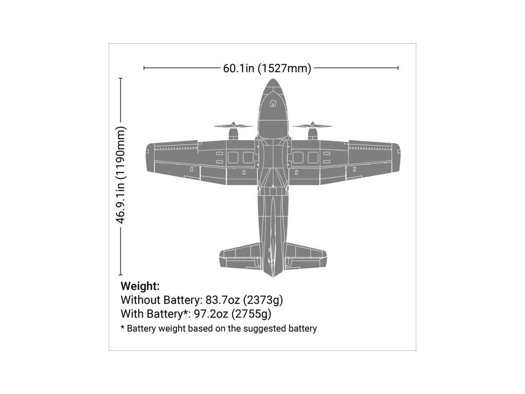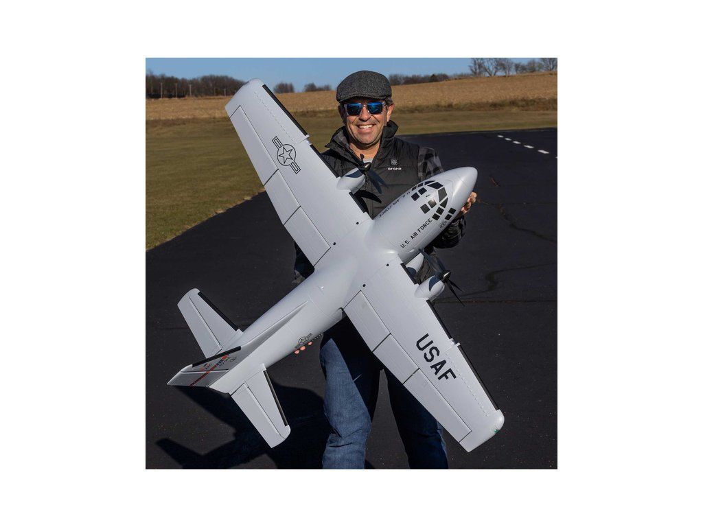 Jedinečný RC model dvoumotorového letadla EC-1500 Twin o rozpětí 1.5 m má vzhled civilních a vojenských nákladních dopravních letadel. Má neuvěřitelnou škálu schopností s 3S a 4S LiPol bateriemi, střídavé motory, 5-listé protiběžné vrtule, nainstalovaná LED světla, funkční nákladová dvířka a hotové zbarvení.