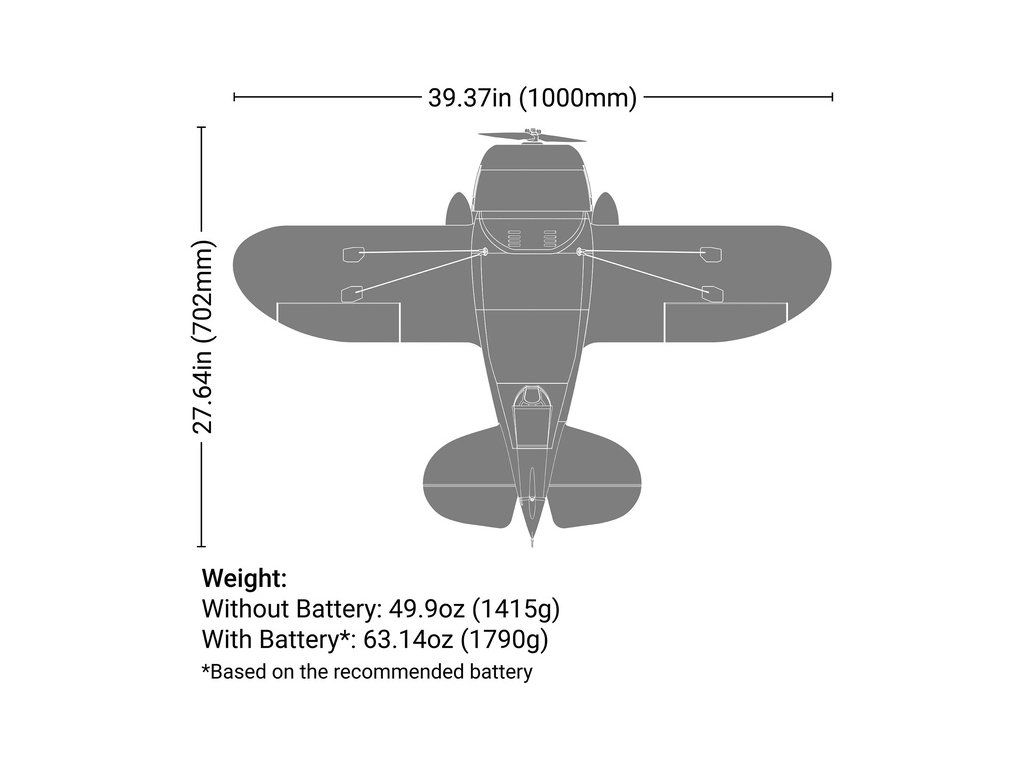 RC model E-flite Gee Bee R-2 1.0m je replikou unikátního letounu, který se účastnil populárních leteckých rychlostních závodů kolem pylonů ve zlaté éře letectví. Obsahuje elektroniku Spektrum se střídavým pohonem s možností napájení 4S LiPo a exkluzivní funkce AS3X+ a SAFE. Verze BNF bez vysílače.