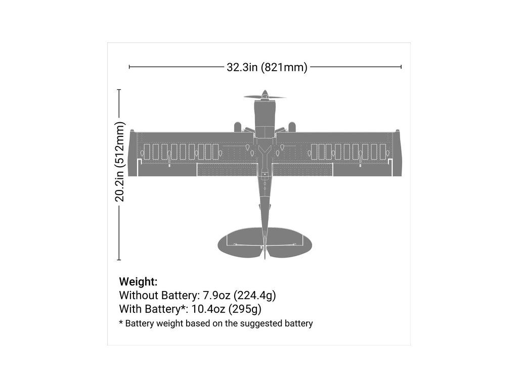Pro uvedení do provozu je nutné doplnit min. 6+ kanálový vysílač DMSX/DSM2, akumulátor LiPo 11.1 V nebo 14.8 V 300 mAh s konektorem JST a kompatibilní nabíječ.