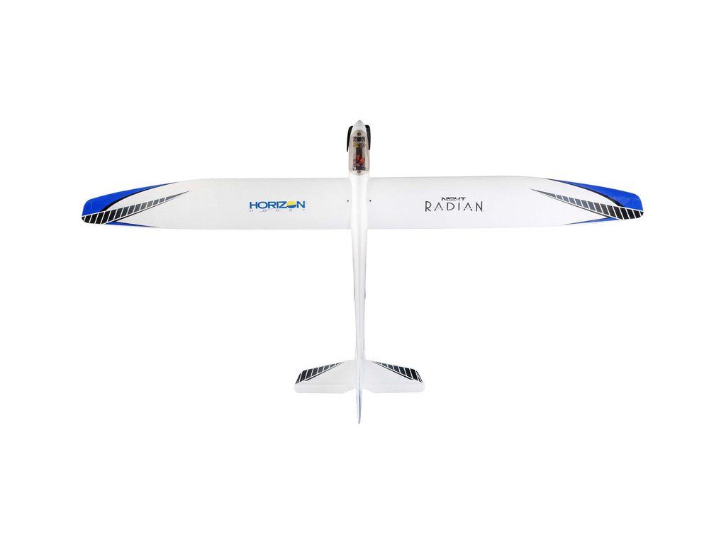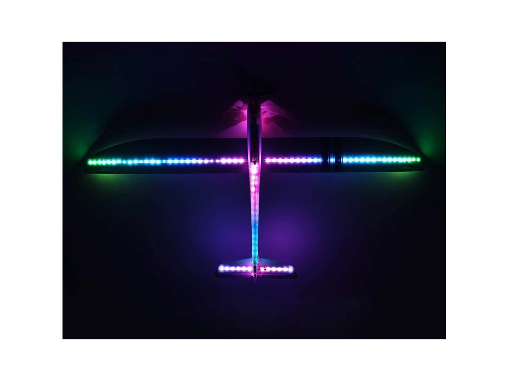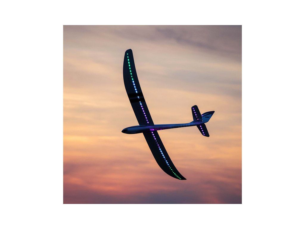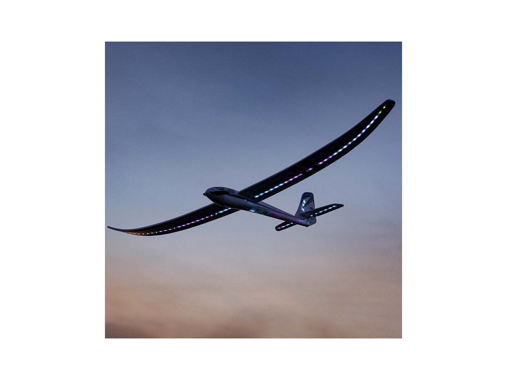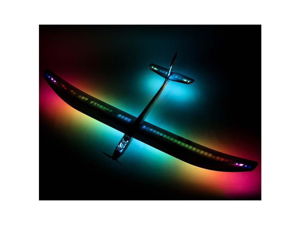 Motorizovaný větroň Night Radian ve verzi PNP s programovatelným osvětlením, nainstalovaný je střídavý motor, regulátor, digitální serva a osvětlení. Konstrukce z EPO, řízeny směrovka, výškovka a motor.