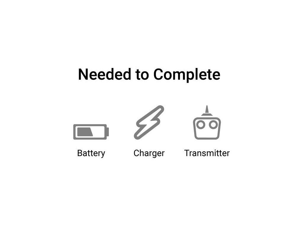 Pro uvedení do provozu budete potřebovat doplnit si k setu ještě vysílač Spektrum, LiPo akumulátor 3S–4S 2200-3200mAh a vhodný nabíječ - viz Doporučujeme koupit.